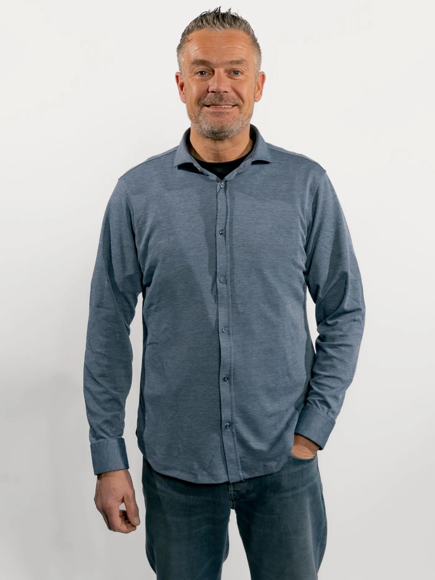 Met dit klassieke overhemd van Napoli Uoma kan je nooit verkeerd gaan. Het overhemd heeft een blauw grijze kleur, een kent kraag en een knoopsluiting in het midden. Een item wat niet mag ontbreken in je kledingkast!