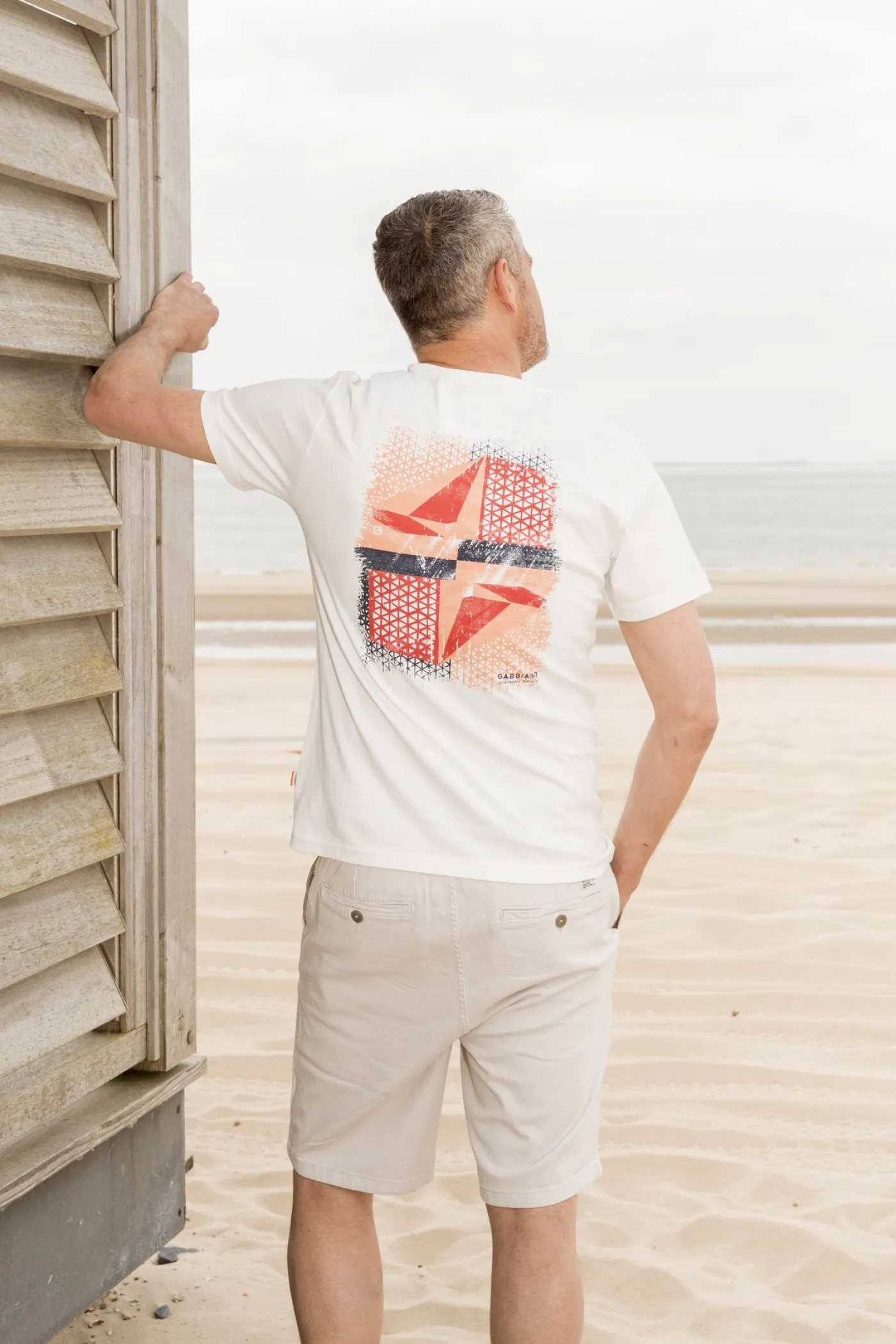 Zomerse wit T-shirt uitgevoerd in een katoen stof. Voorzien van een moderne backprint en subtiel logo op de borst. Voeg een jeans en witte sneakers toe voor een alledaagse zomerse look!