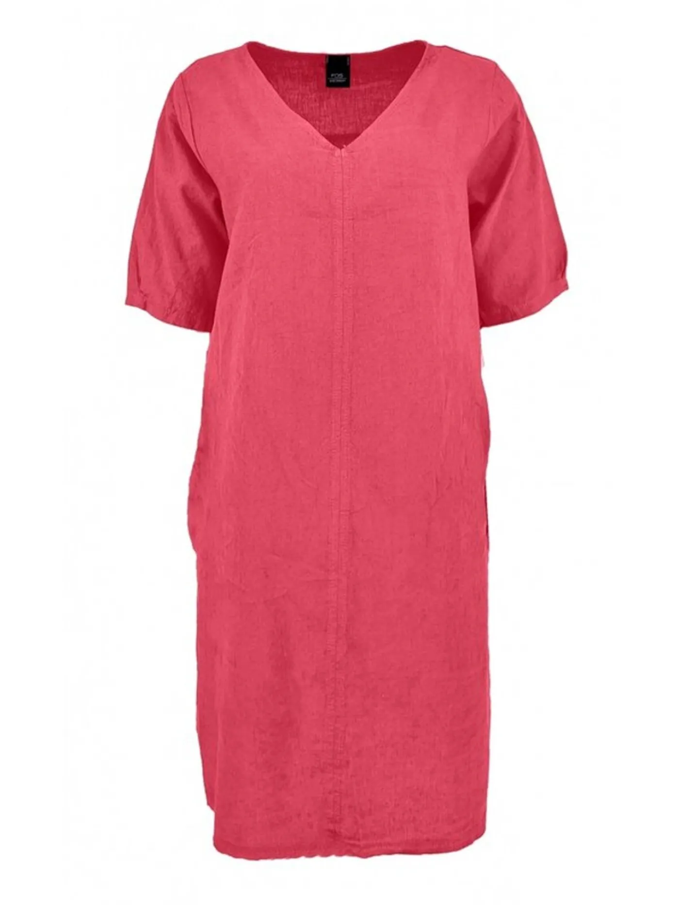 Deze linnen jurk van het merk FOS heeft een comfortabele en luchtige stof. De jurk heeft korte mouwen en een V-hals, je kan deze jurk voor verschillende gelegenheden stylen.