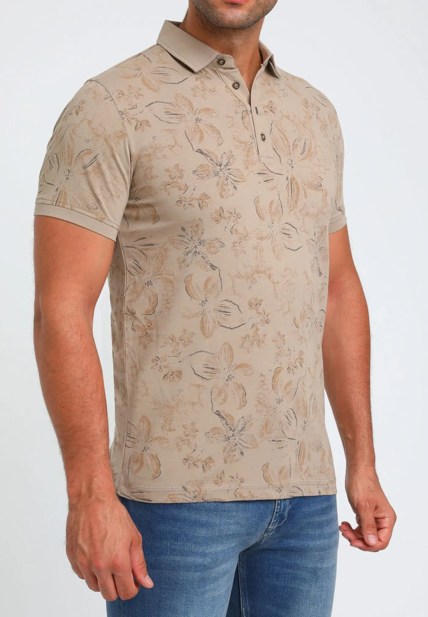 Een polo met een all-over print bestaande uit bloemen. Het item heeft een ronde hals, korte mouwen en op borsthoogte is het logo van Gabbiano geplaatst. Je krijgt spontaan zin in de zomer als je deze polo ziet! We hebben dit artikel in meerdere kleuren.