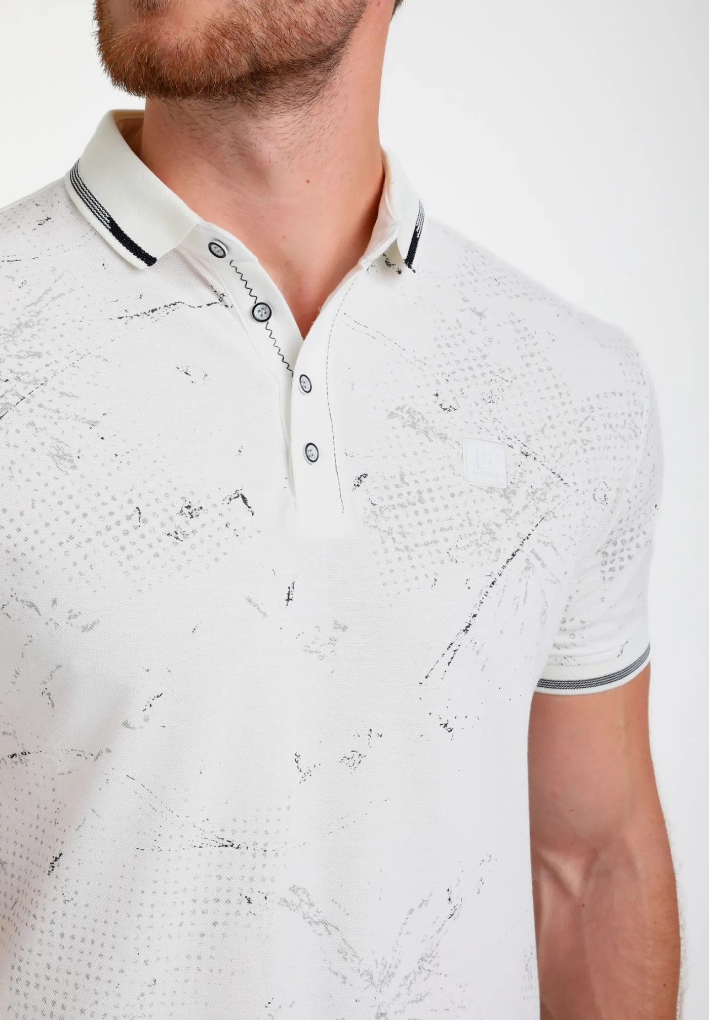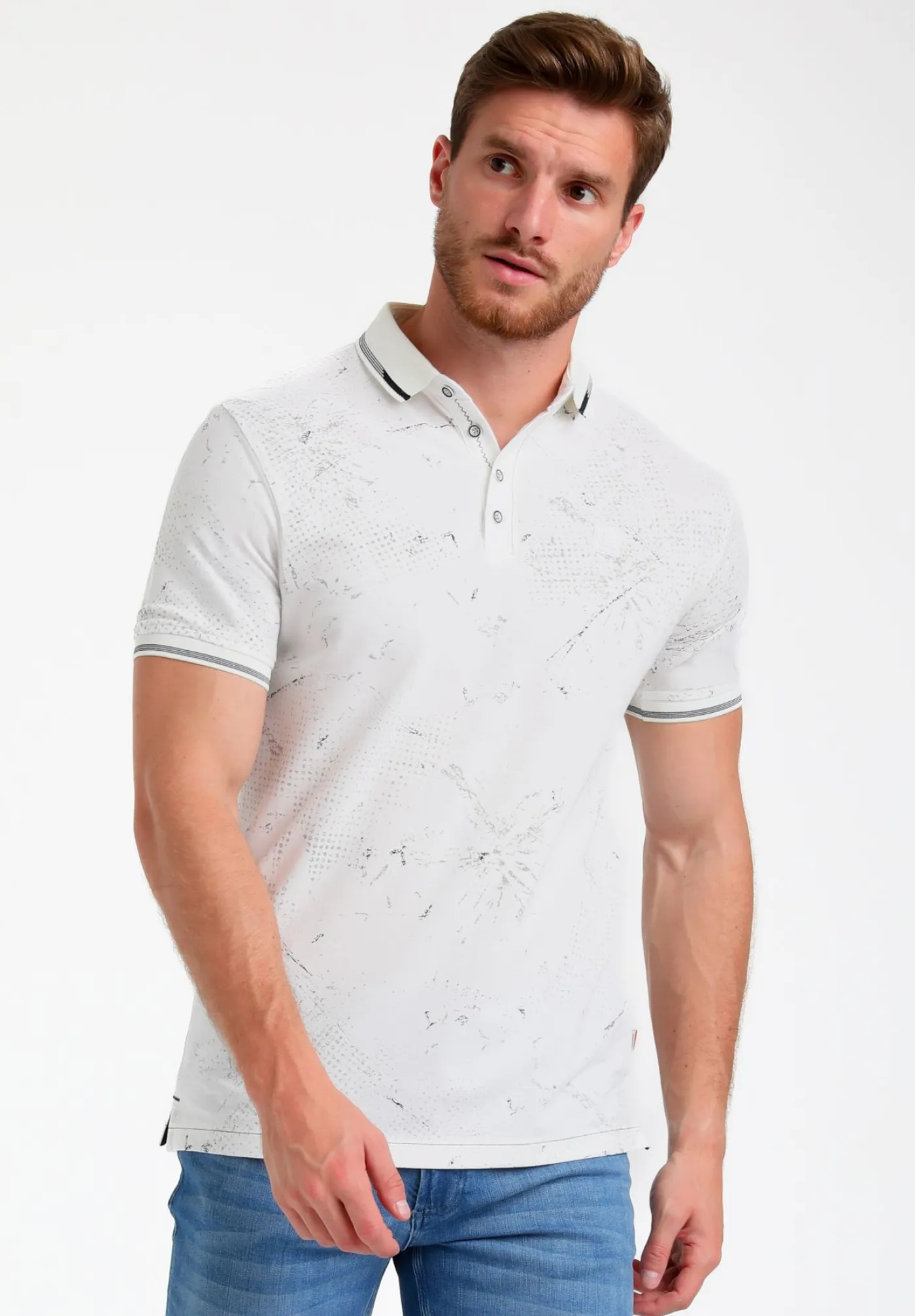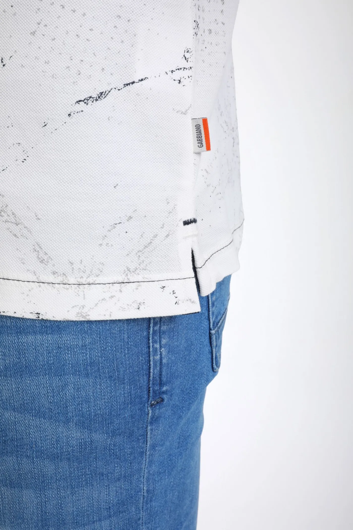 Deze witte polo van Gabbiano heeft een leuke ecru print.