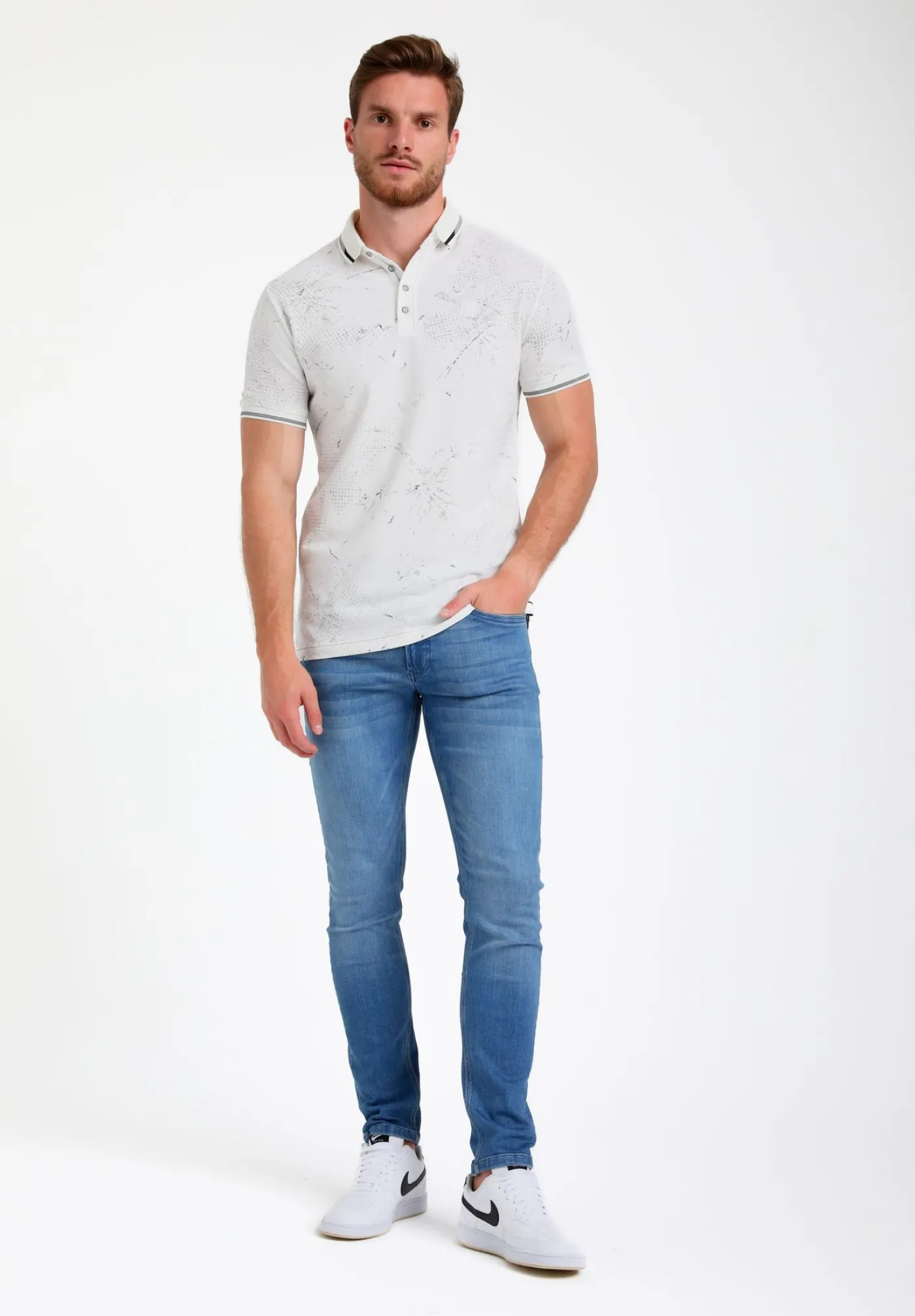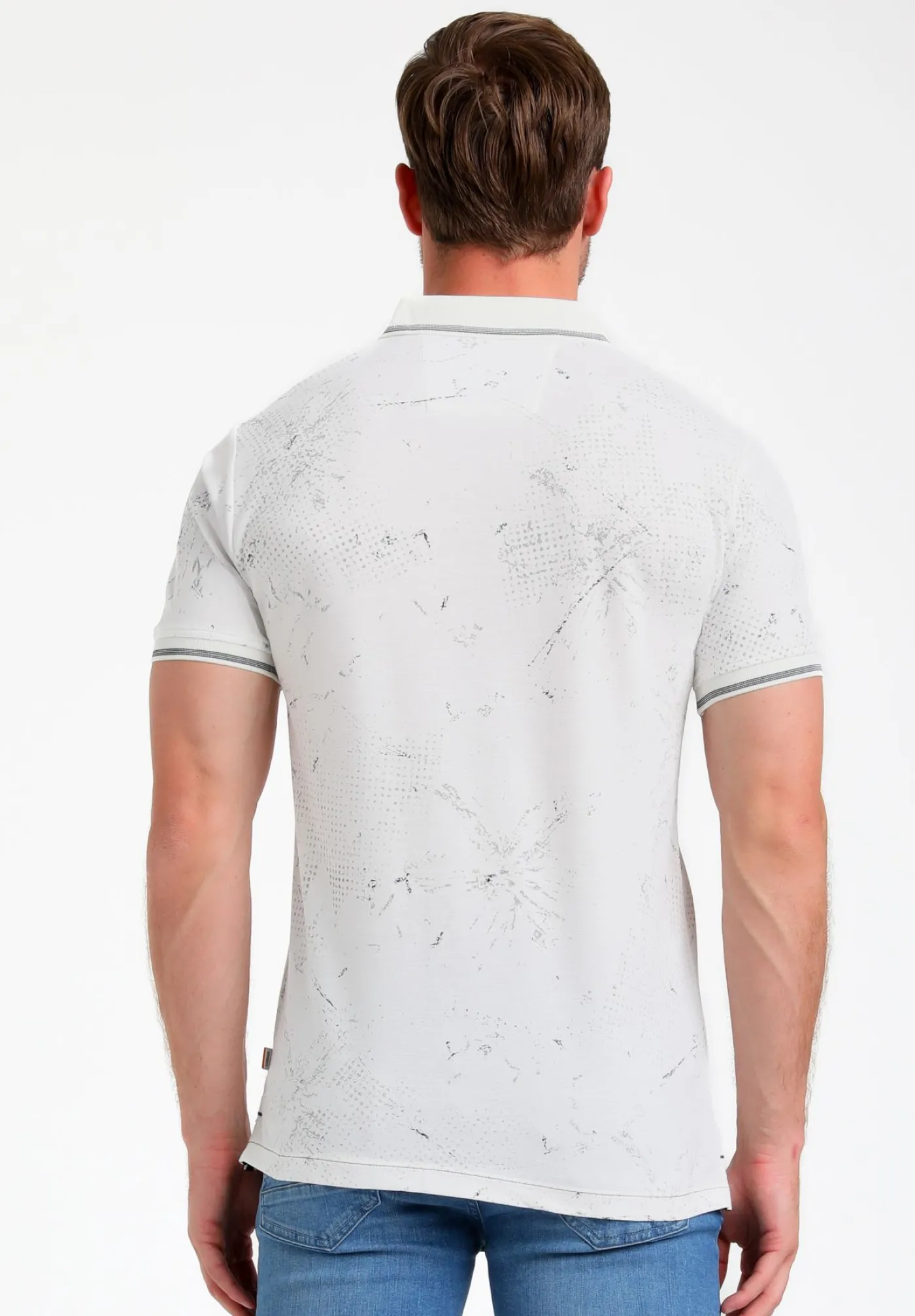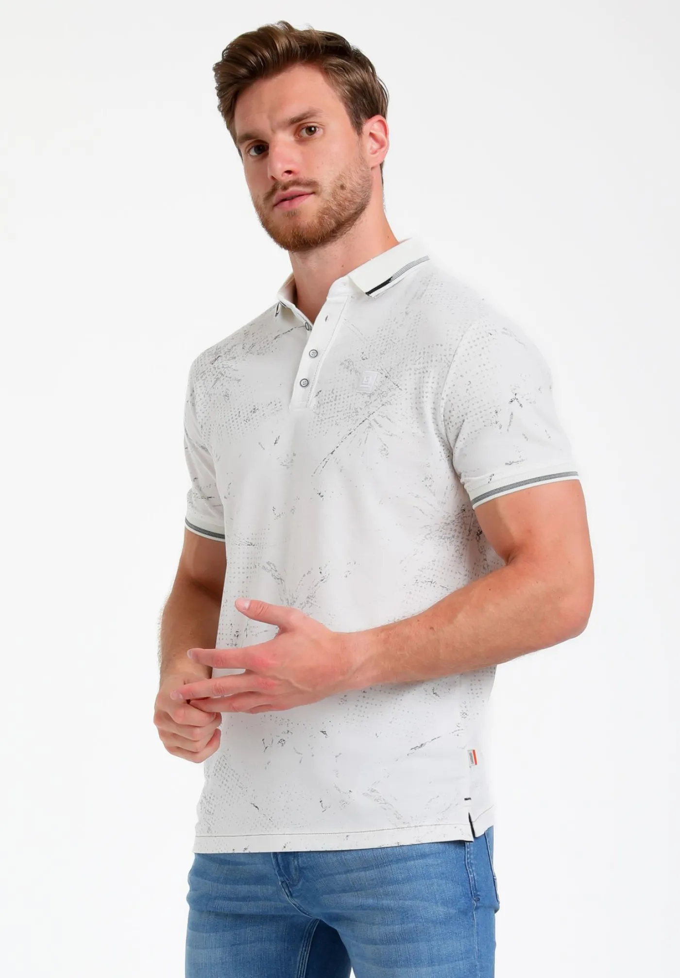 Deze witte polo van Gabbiano heeft een leuke ecru print.