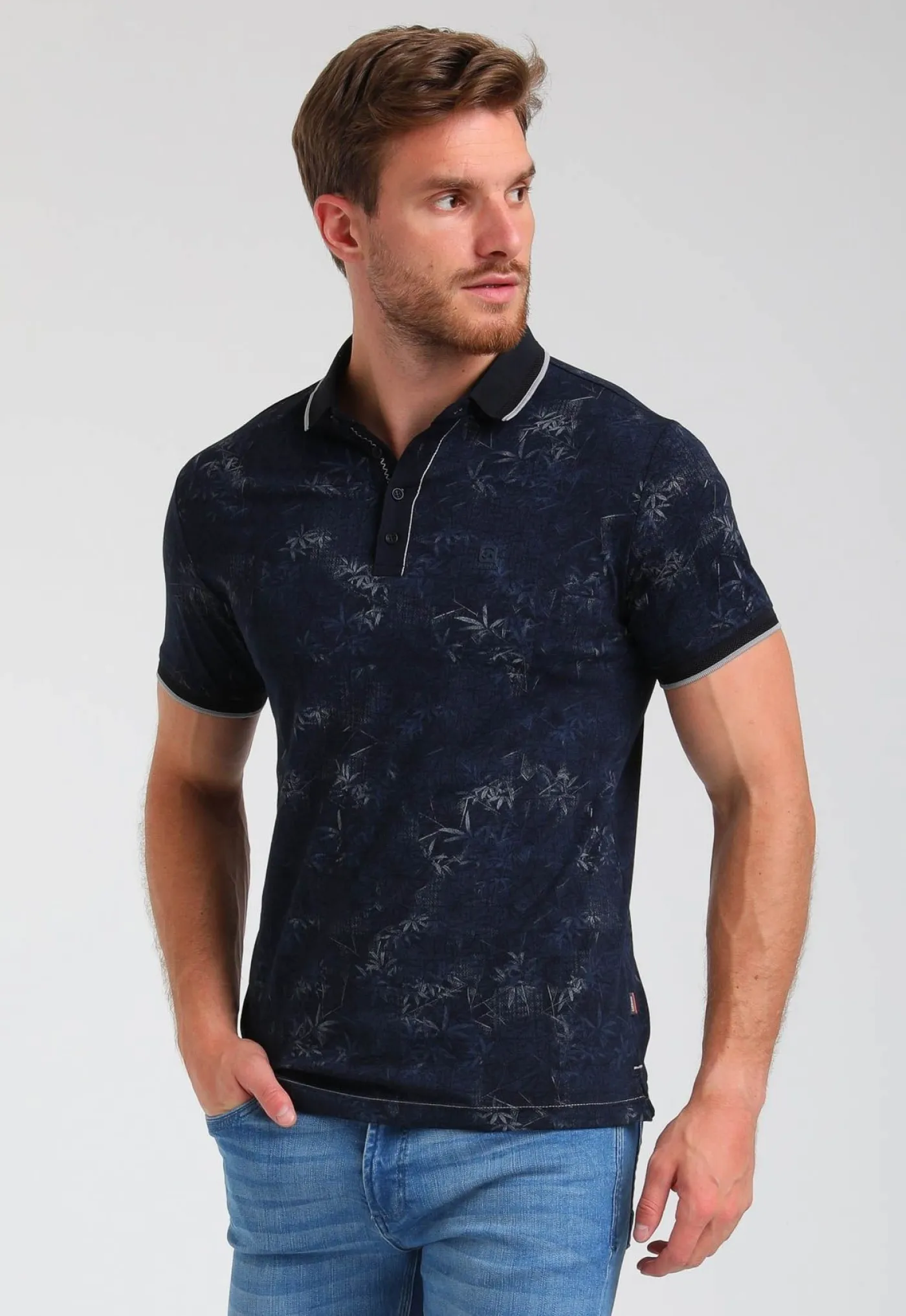 Donkerblauwe heren polo voor heren van Gabbiano. Dit item is voorzien van een all over print, polokraagje en knoopsluitingen. Combineer met een jeans voor een casual look of chino voor een nettere look.