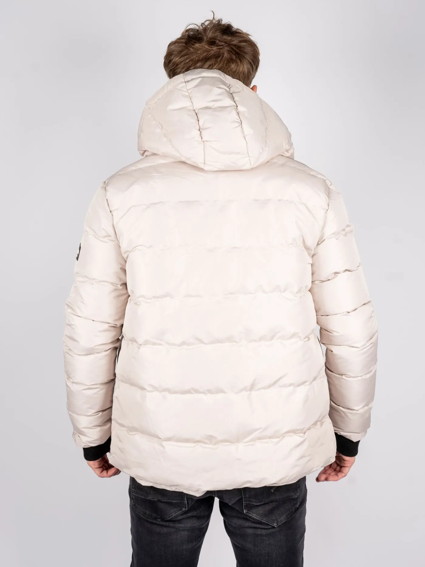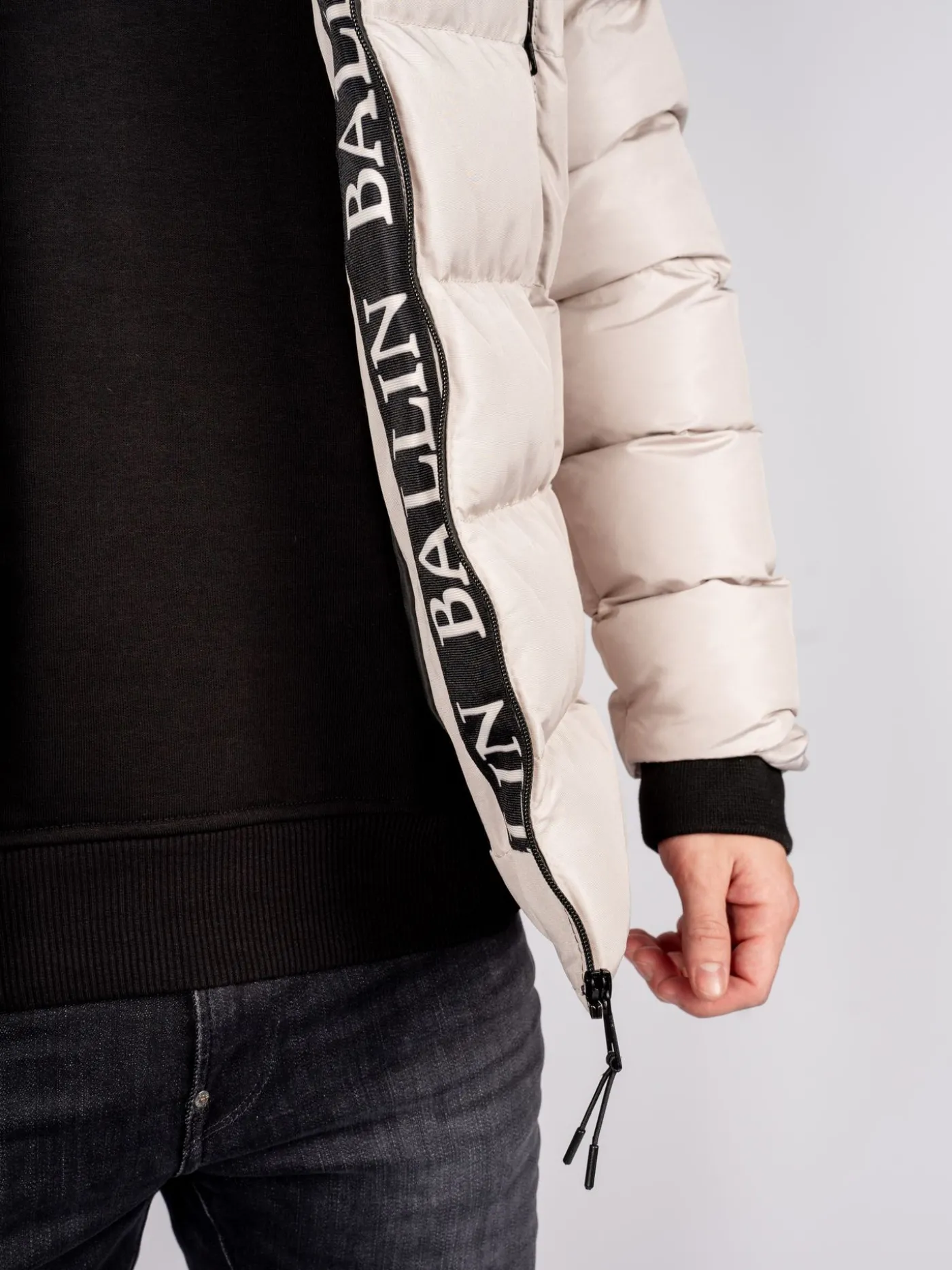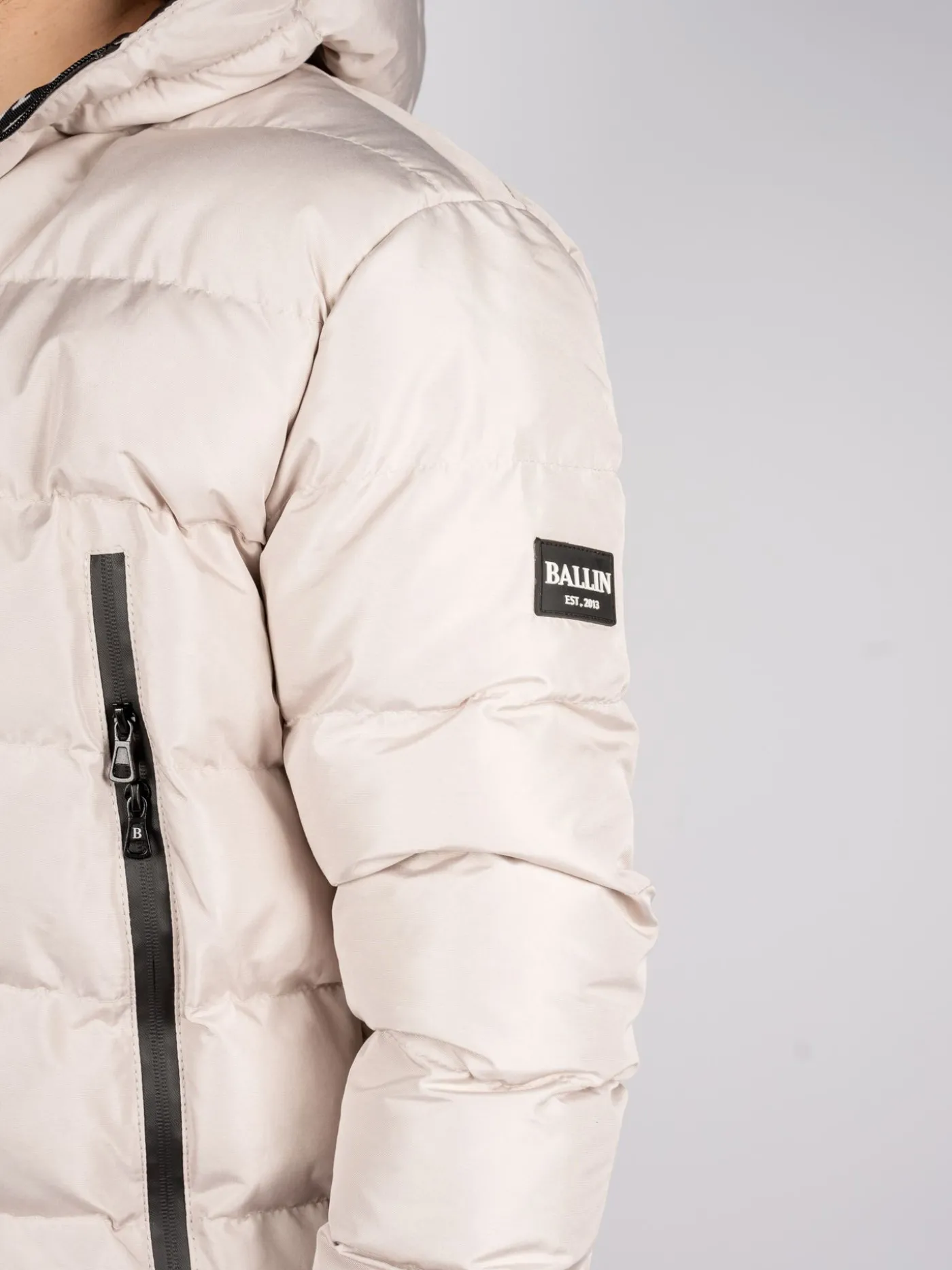 Licht beige gewatteerde jas van het merk Ballin. Deze jas is zeer comfortabel en warm tijdens de koude dagen.Ik vertel u kort over de details van deze toffe jas. In de binnenkant van de ritssluiting bevindt zich een printje met de naam van het merk die doorloopt tot in de capuchon. Op het linker boven arm zit een badge van het logo. Én de jas heeft twee keer twee steekzakken met ritssluiting en één binnenzak! Tof toch? De jas is ook verkrijgbaar in het zwart.