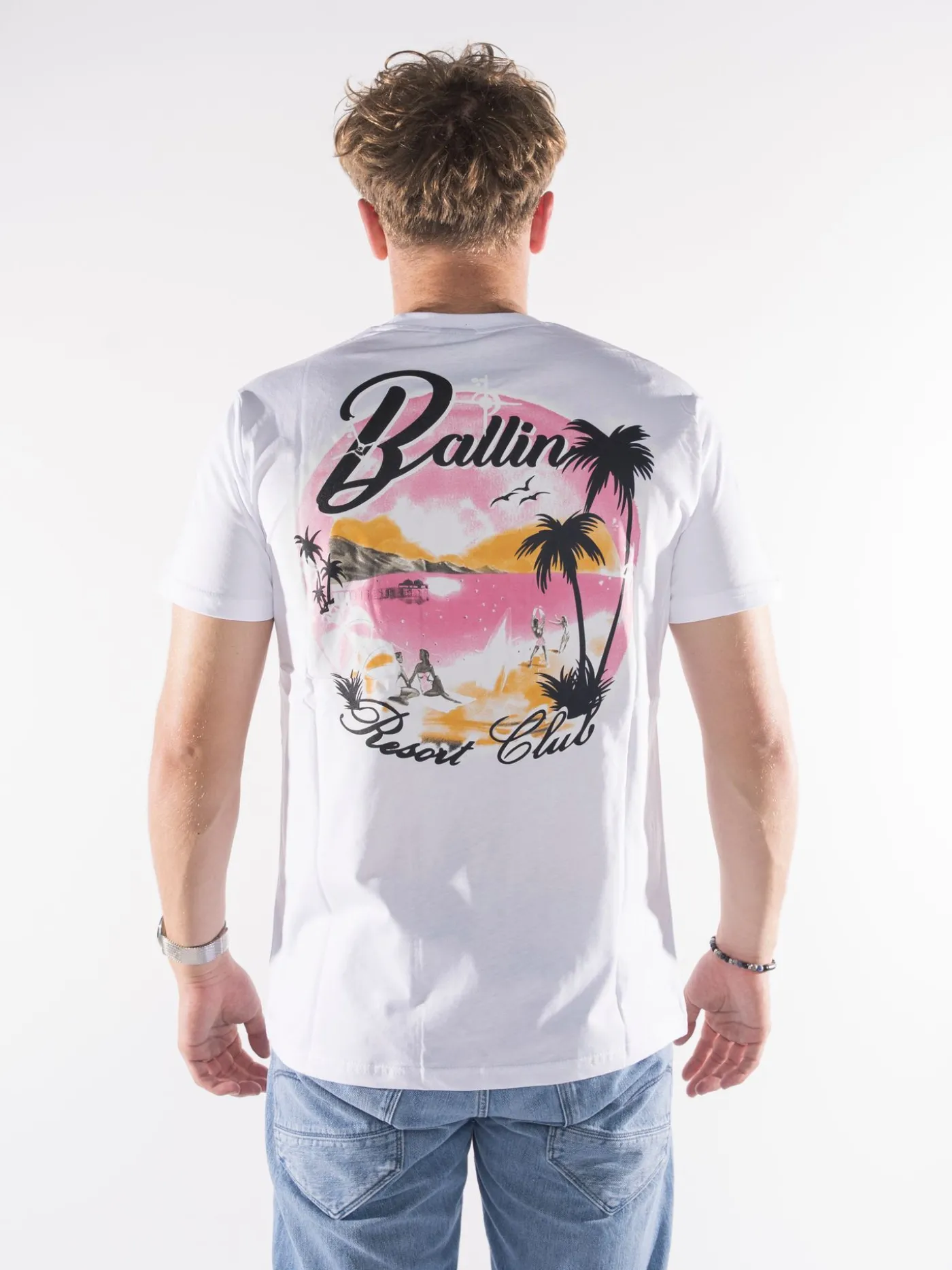 Dit witte shirt van Ballin heeft een toffe palmboom print op de achterkant.