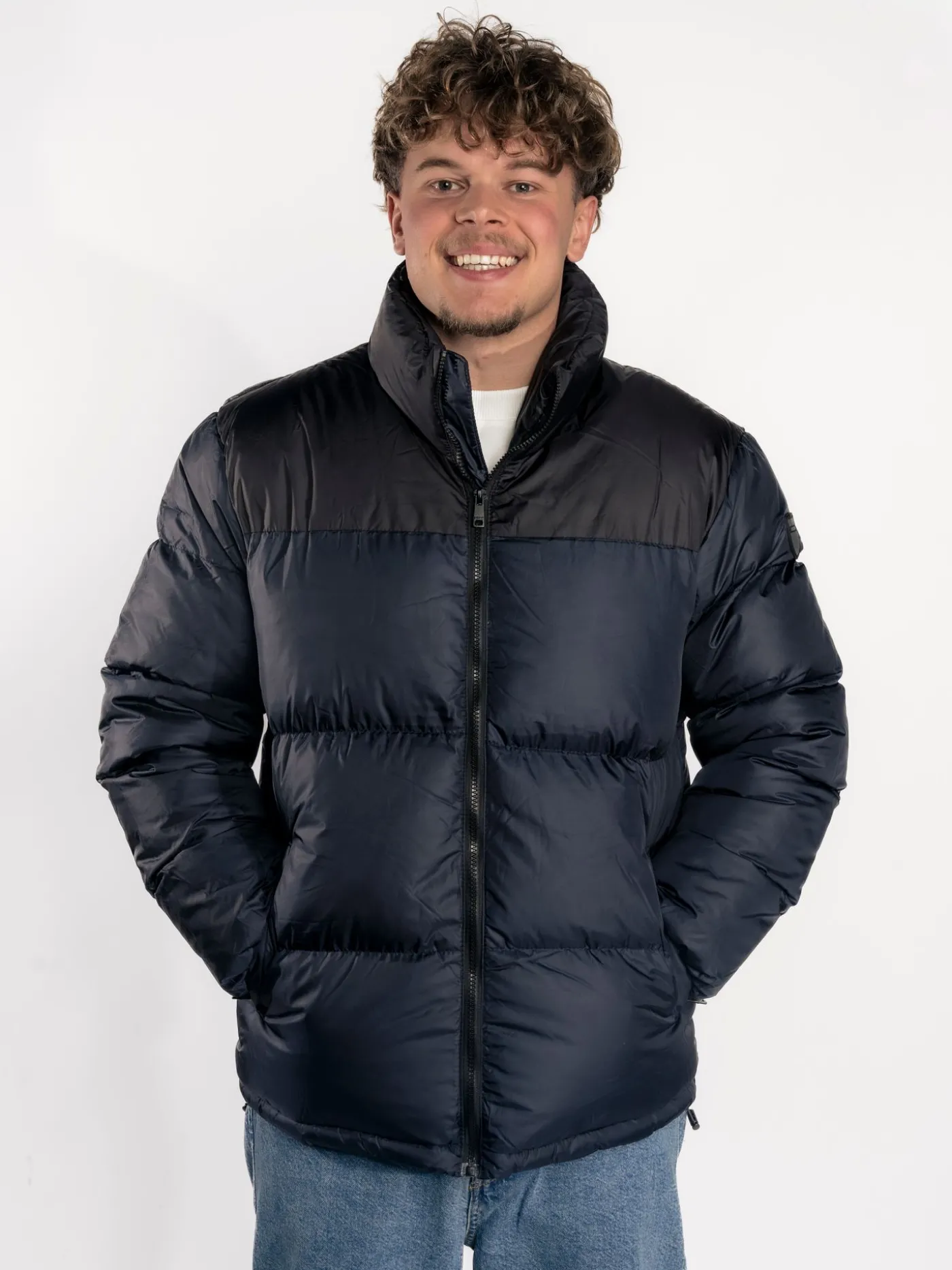 Deze gewatteerde puffer van Ballin voor heren combineert een zwart bovenstuk met blauwe mouwen en onderkant voor een stoere en moderne uitstraling. Het logo op de linkermouw voegt een subtiele, herkenbare touch toe. Dankzij de lichtgewicht vulling blijft de jas comfortabel en gemakkelijk te dragen. Combineer hem met jeans of een chino voor een casual, stijlvolle look. Een veelzijdige jas die je winteroutfits direct compleet maakt.