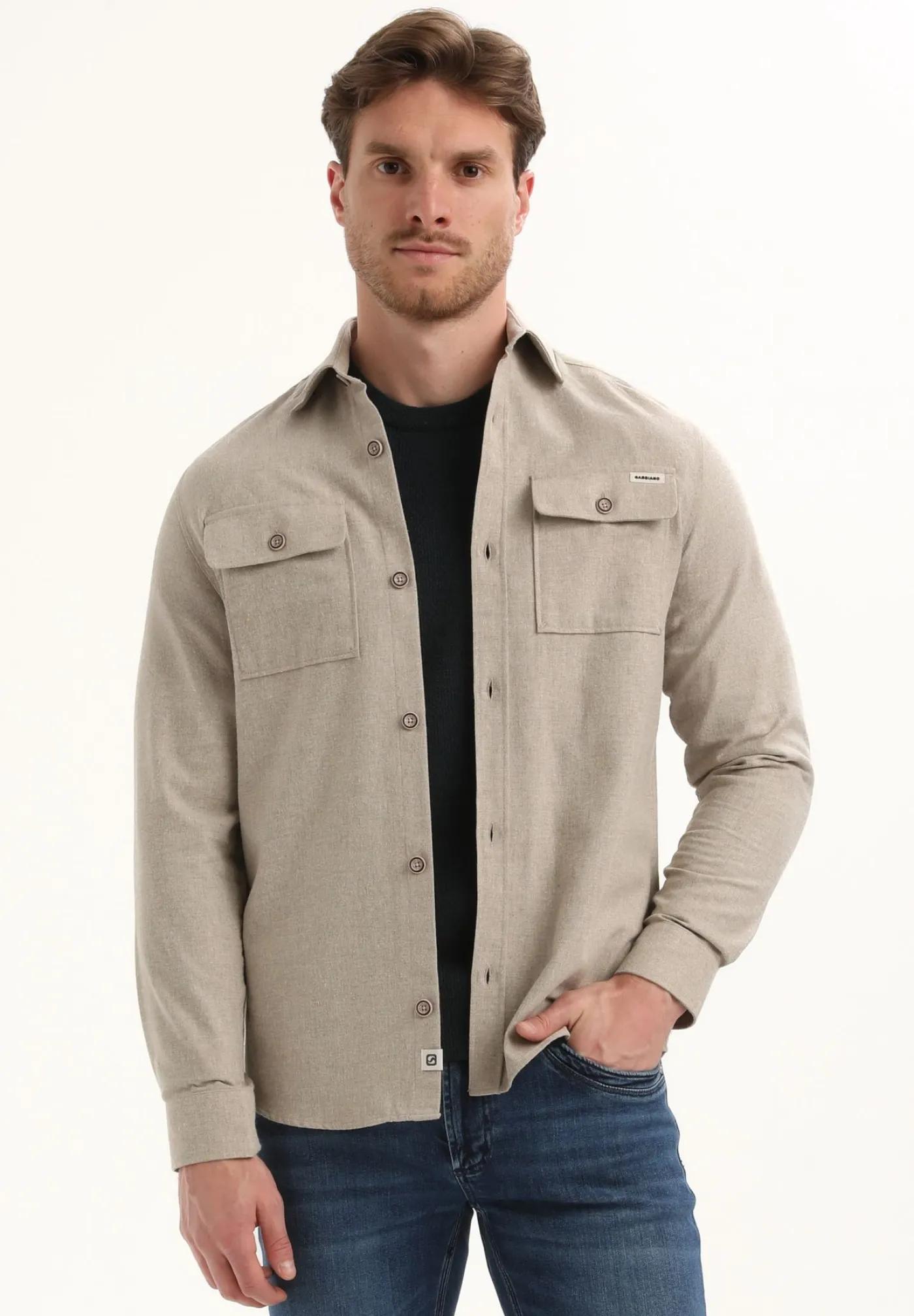 Dit overshirt van Gabbiano is een veelzijdig item dat perfect is voor een casual look. Uitgevoerd in een taupe kleur met een zachte lichte stof. Voorzien van twee borstzakken met knoopsluiting en een subtiel logo op de linkerzak. Draag ‘m open over een T shirt of dichtgeknoopt als lichte tussenlaag.