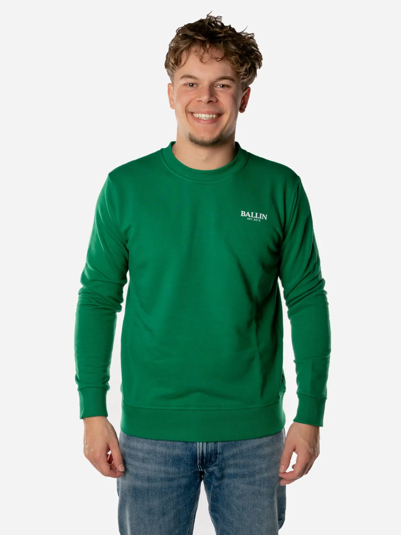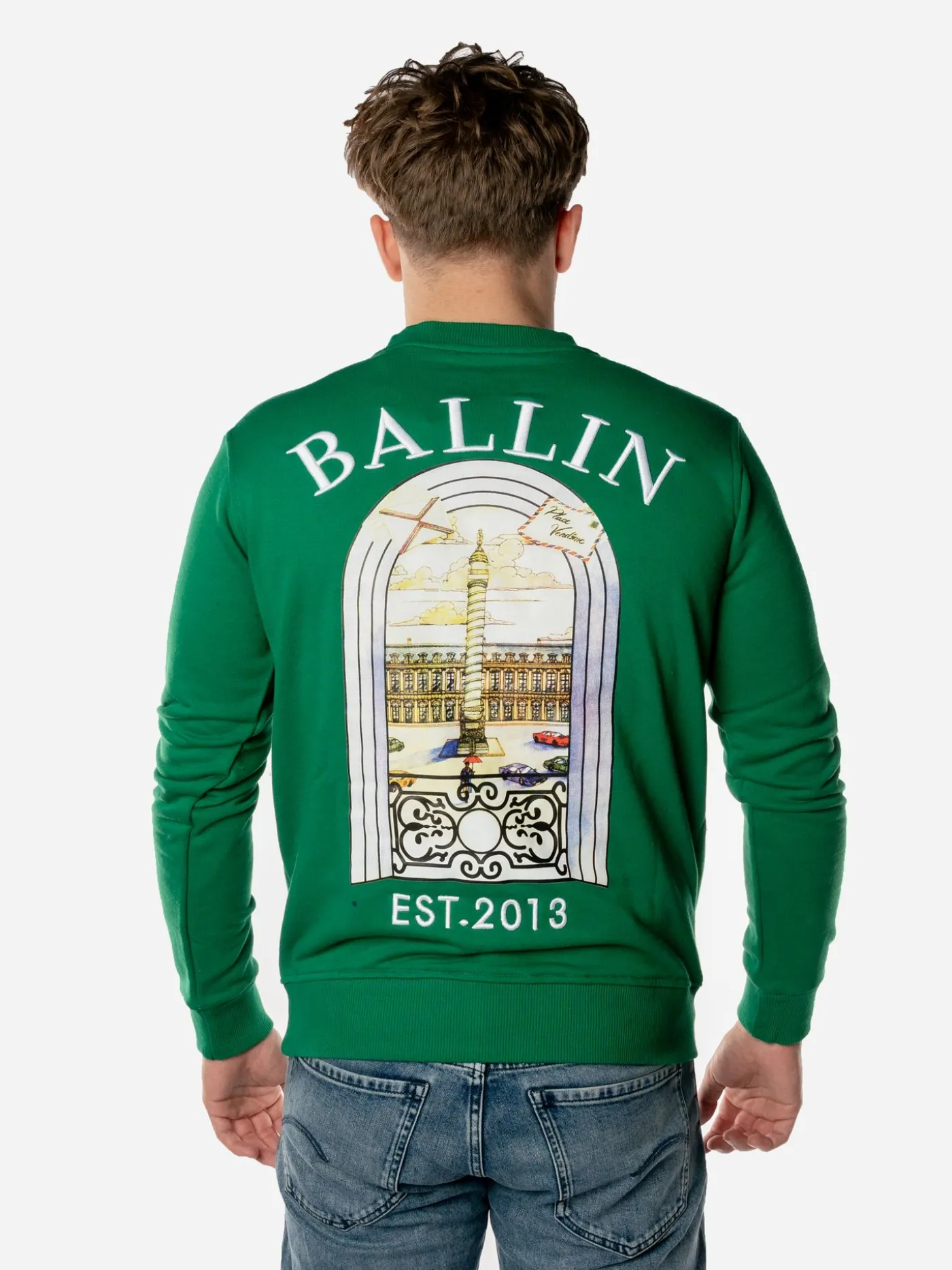 Groene sweater van Ballin met witte tekst aan de voorzijde en een bedrukking aan de achterzijde. Leuk te combineren met jeans en witte sneakers , voor een casual fit.