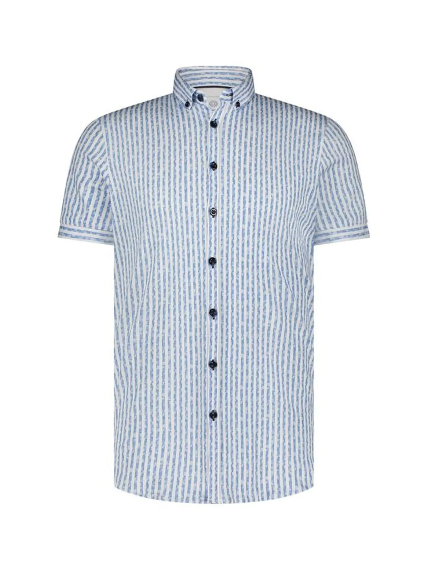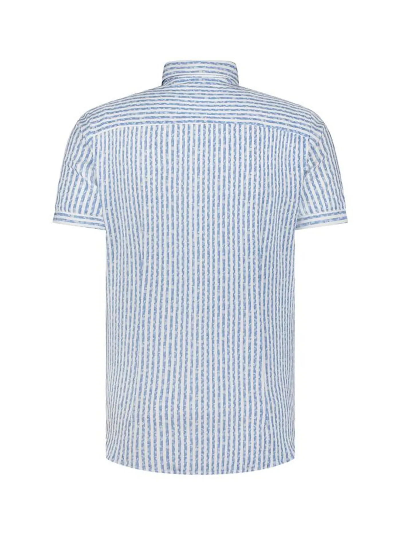 Dit overhemd heeft een streepjes print en is van het merk Blue Industry. Het overhemd heeft korte mouwen en een knoopsluiting.