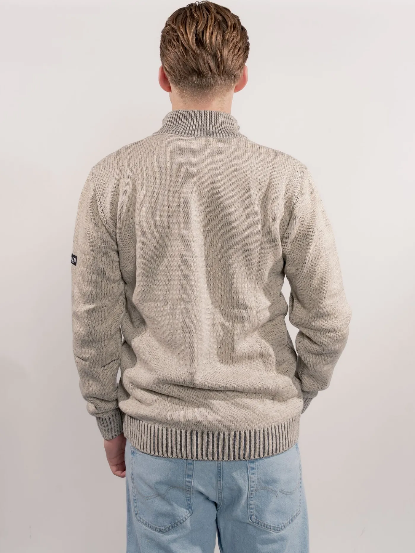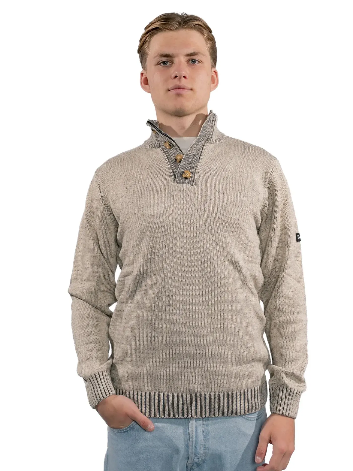 Deze gebreide herentrui is een comfortabele en stoere keuze voor het najaar en de winter. De trui heeft een hoge kraag met een knoopsluiting, wat zorgt voor een klassieke en sportieve uitstraling. Gemaakt van een zachte, warme stof die prettig aanvoelt en goed isoleert tijdens koude dagen. De geribde boorden bij de mouwen en zoom zorgen voor een mooie pasvorm en extra draagcomfort. Perfect te combineren met een jeans voor een casual, tijdloze look.