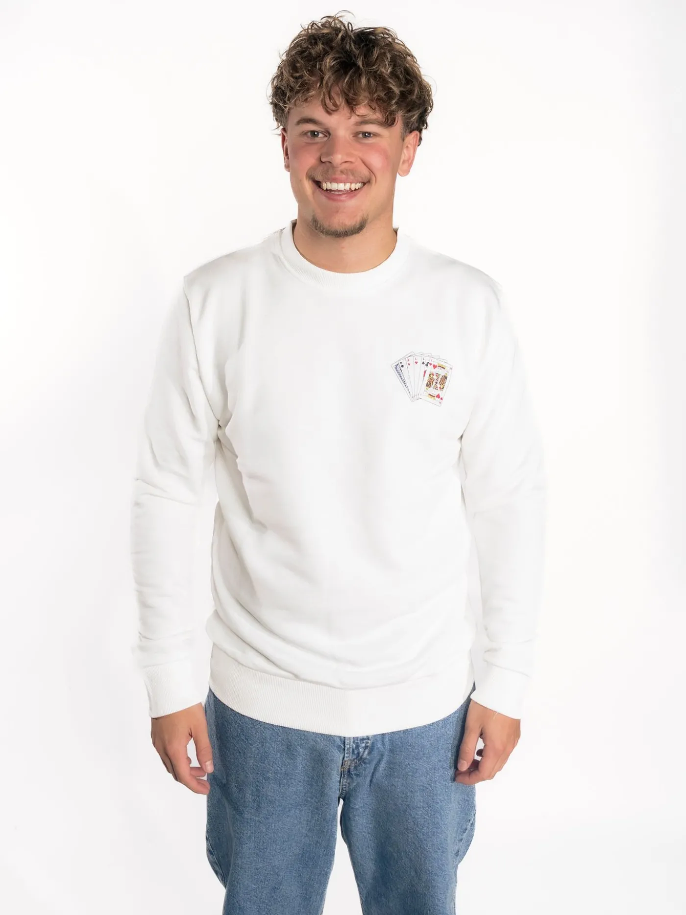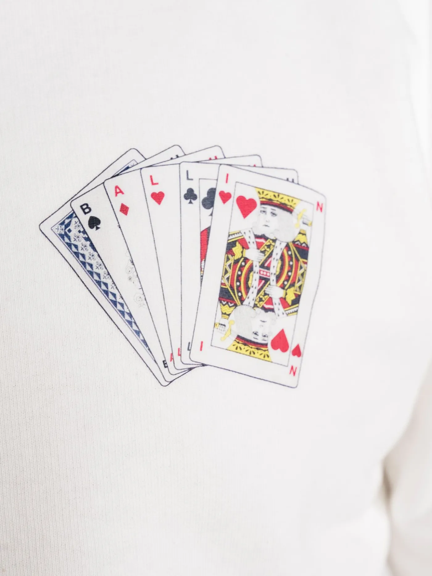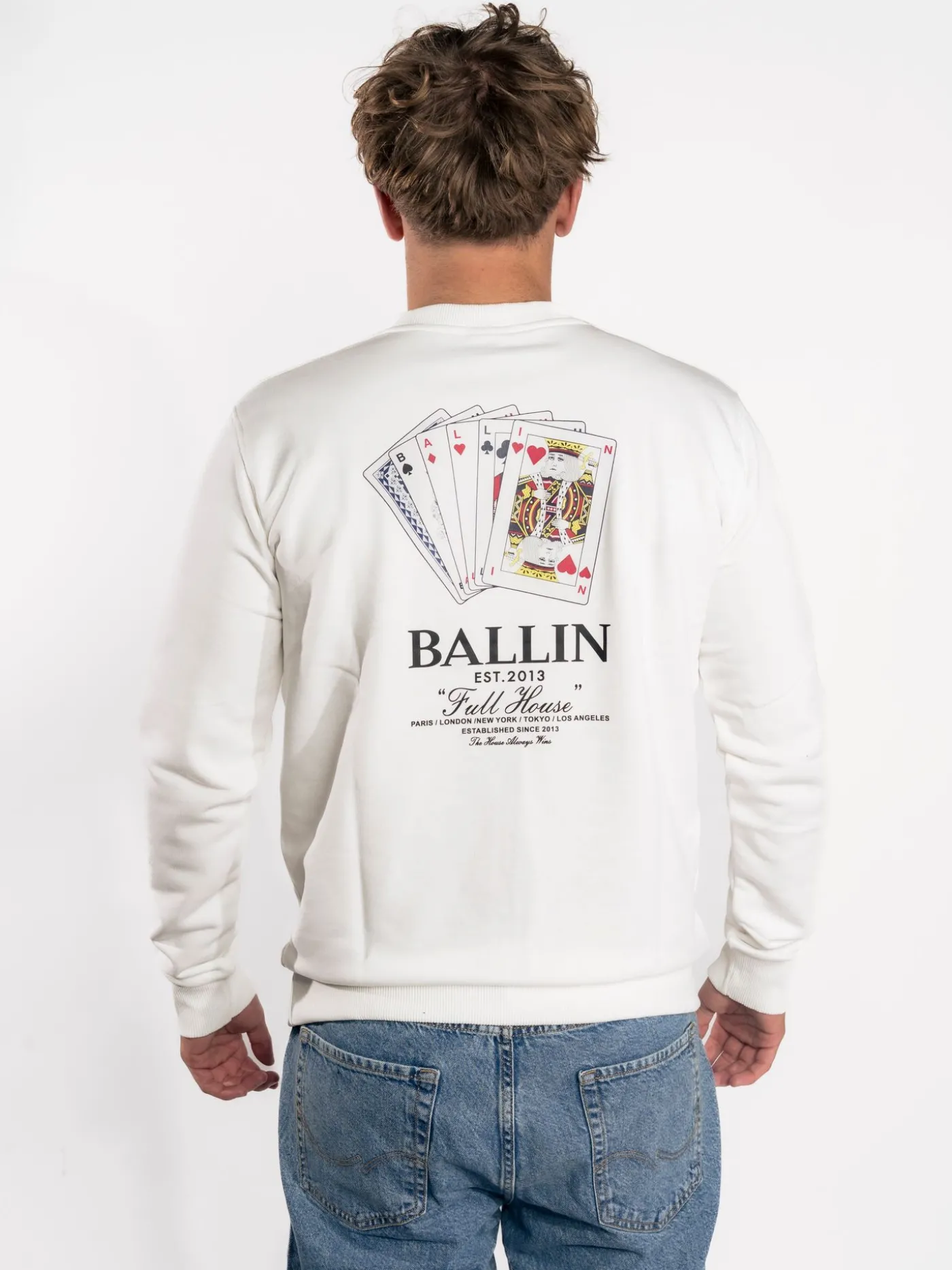 Deze witte sweater van Ballin springt eruit door het creatieve kaartenlogo op de borst, waarbij de letters samen het woord Ballin vormen. De opvallende backprint maakt de trui extra uniek en geeft je outfit een moderne, streetwear vibe. Gemaakt van zachte, comfortabele stof die ideaal is voor dagelijks gebruik.