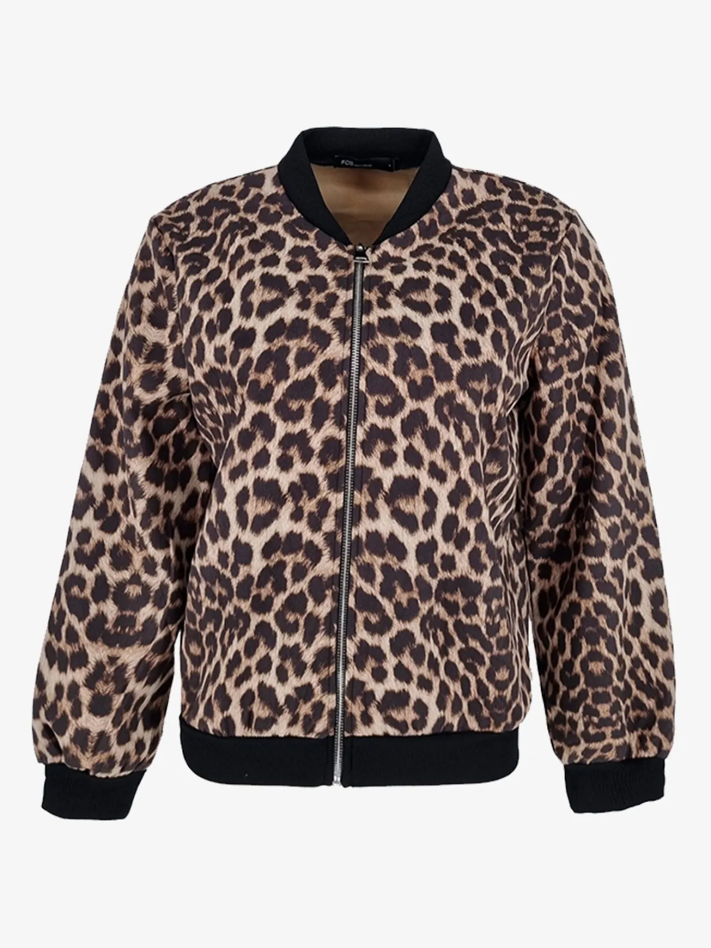 Een mega leuk jasje met panterpint van het merk FOS. Het is een wat dunner jasje van een heerlijk zachte stof, heeft een ritssluiting en een zwarte elastische band aan de onderkant en aan het uiteinde van de mouwen. Combineer het jasje met een jeans voor een wat stoerdere look of juist met een pantalon voor een meer classy look!