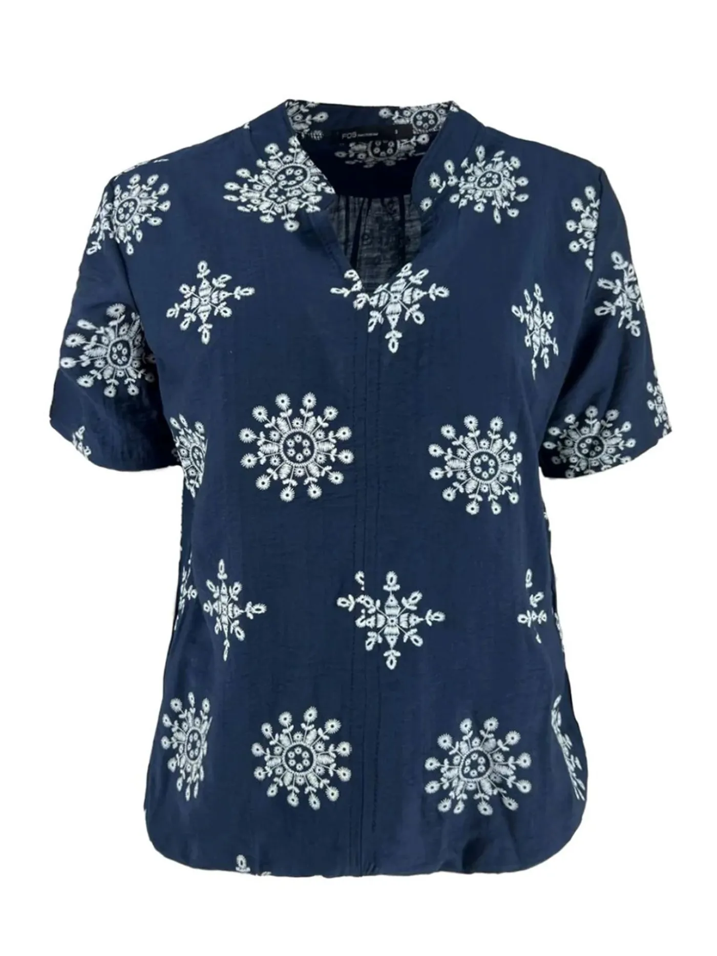 Voeg een vleugje vrouwelijke flair toe aan je garderobe met de FOS Fashion 7337 Top Doortje Borduurbloem. Deze luchtige top is uitgevoerd in een rijke viscosekwaliteit en voorzien van een subtiele bloemenborduursel, wat het een frisse en elegante uitstraling geeft.