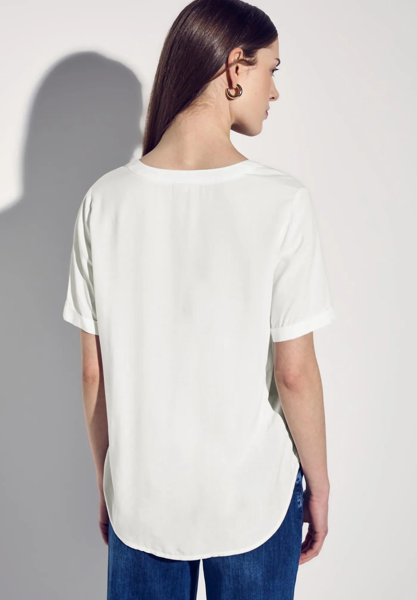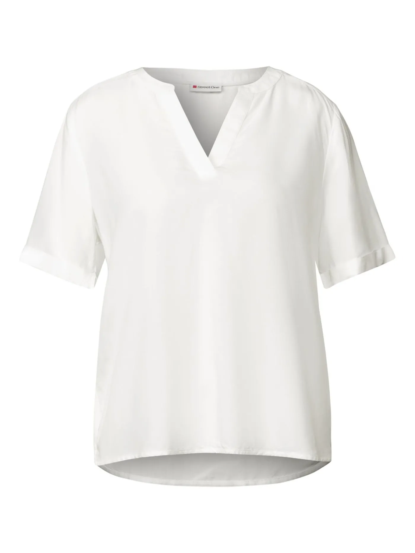 Dit is een T-shirt van Street One in de kleur wit met een V-hals en korte mouwen. Dit is echt een perfecte T-shirt voor jou zomer omdat het zo lekker luchtig is.