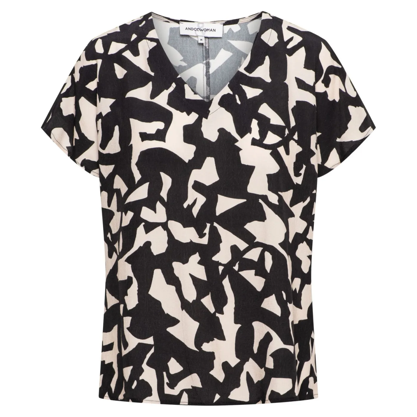 T-shirt van het merk &Co Woman met zwart witte print. Het T-shirt heeft korte mouwen en een V-hals, je kan het T-shirt combineren met andere items van &Co Woman