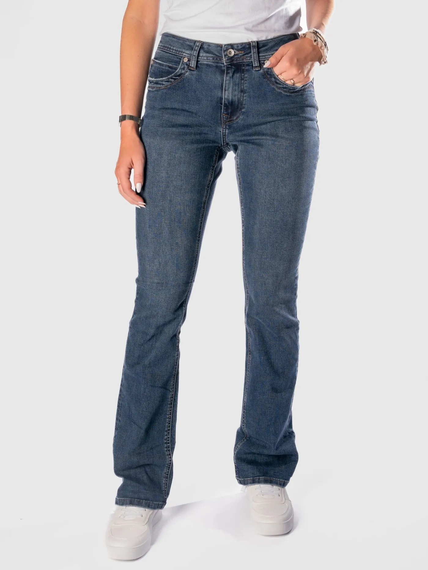 Deze flaredjeans is een moderne klassieker die niet mag ontbreken in je garderobe. De jeans heeft een aansluitende pasvorm op heupen en dijen en loopt vanaf de knie licht uit, perfect om te dragen met sneakers, hakken of laarzen. De broek heeft steekzakken aan de voor en achterkant, een knoop- en ritssluiting en riemlussen. De medium blauwe wassing geeft een tijdloze uitstraling die je moeiteloos combineert.