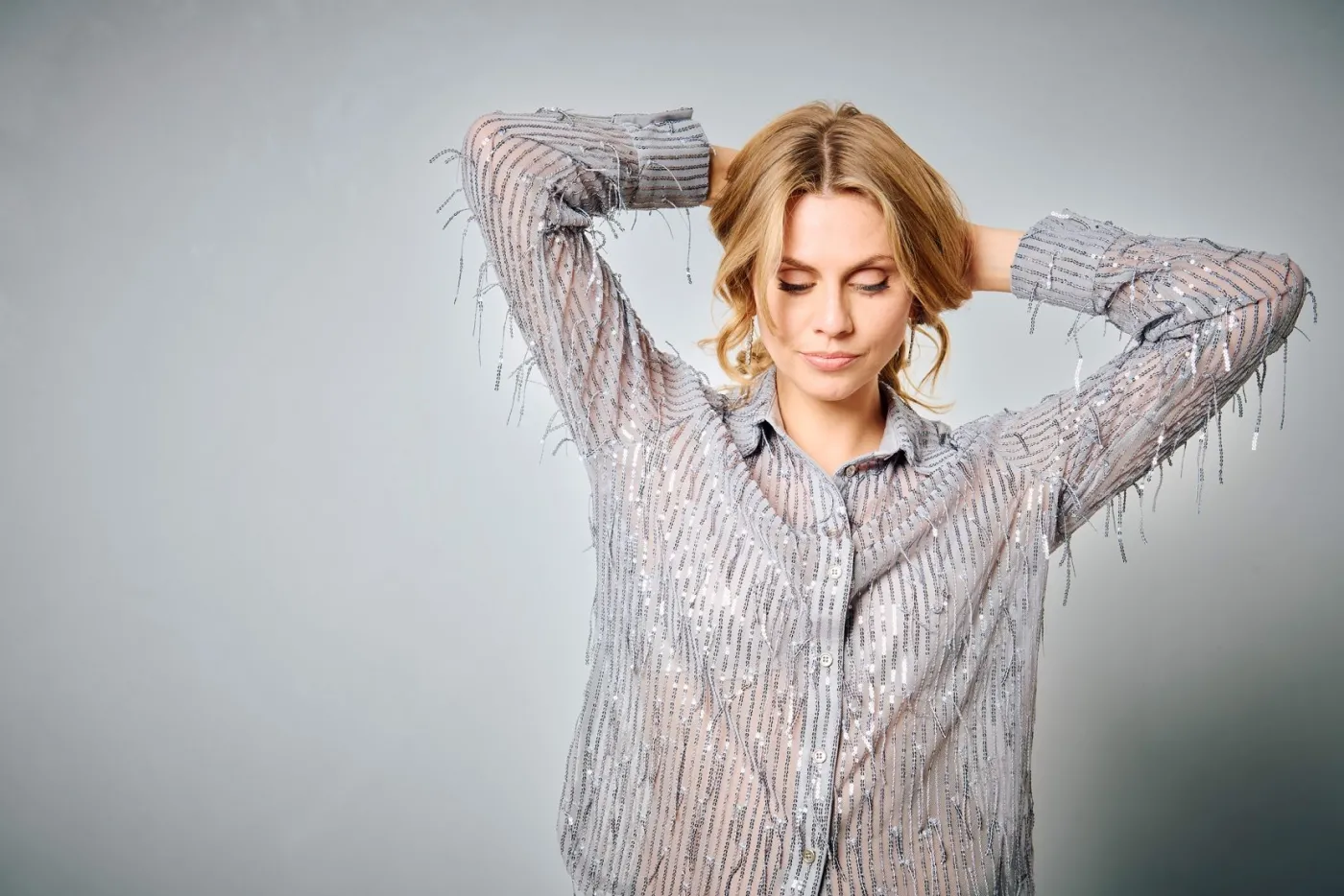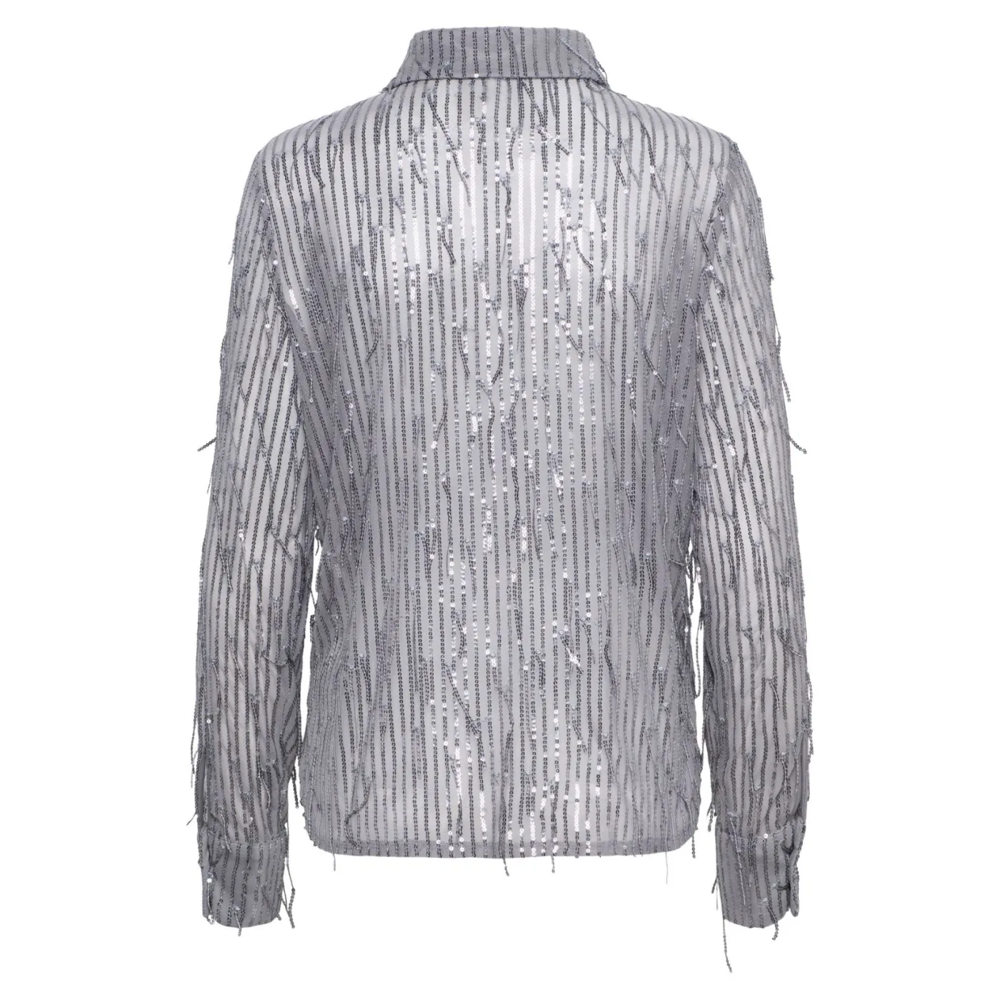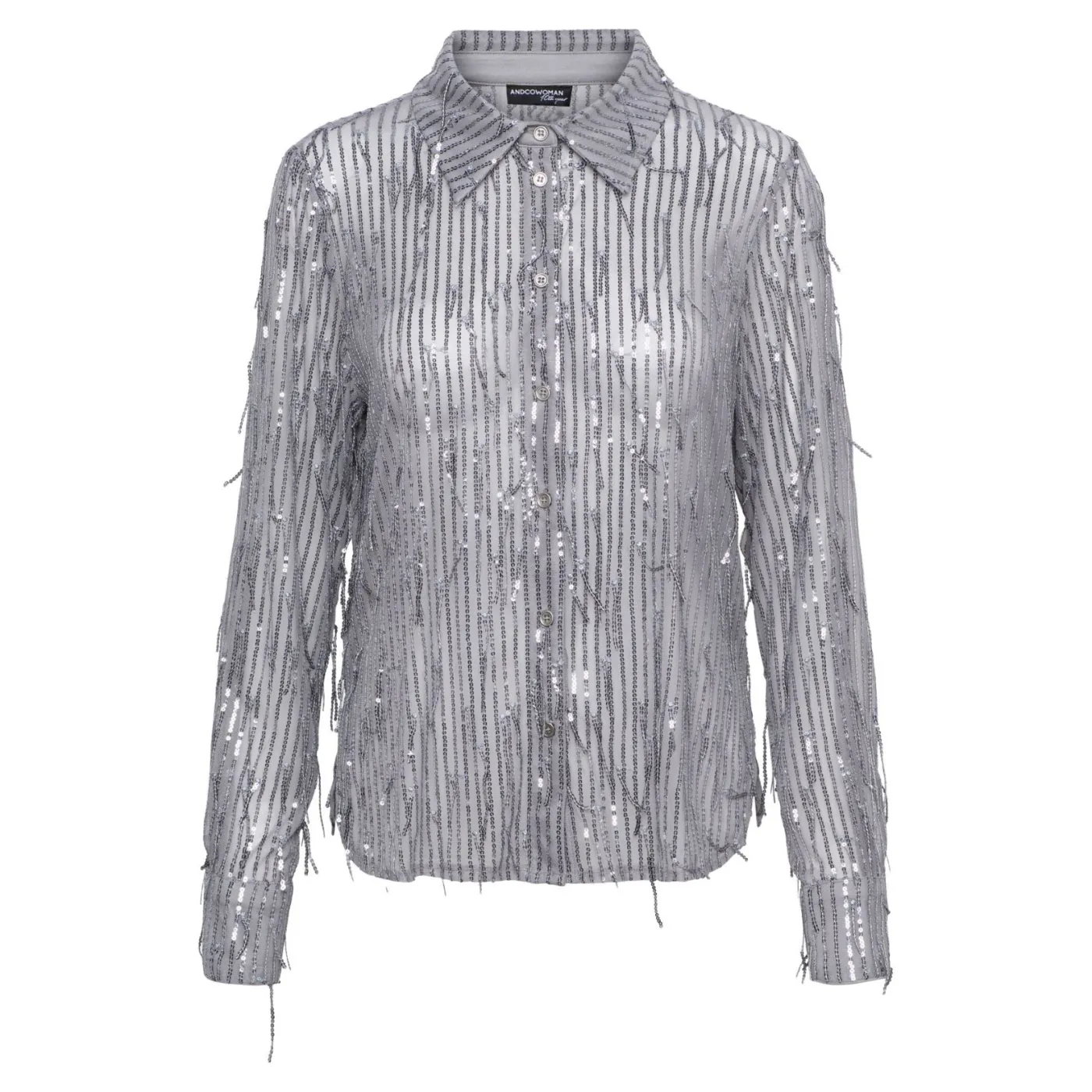 Deze semi doorschijnende blouse van &Co Woman is een echte eyecatcher dankzij de stof en loshangendezilveren pailletten. De lichte, soepelvallende stof geeft de blouse een elegante en feestelijke uitstraling. Aan de zijkant heeft de blouse een kleine split. Perfect te combineren met een mooie broek of rok voor een chique look. De zilveren pailletten zorgen ervoor dat je outfit direct opvalt. Een stijlvol item dat klasse en comfort moeiteloos samenbrengt.