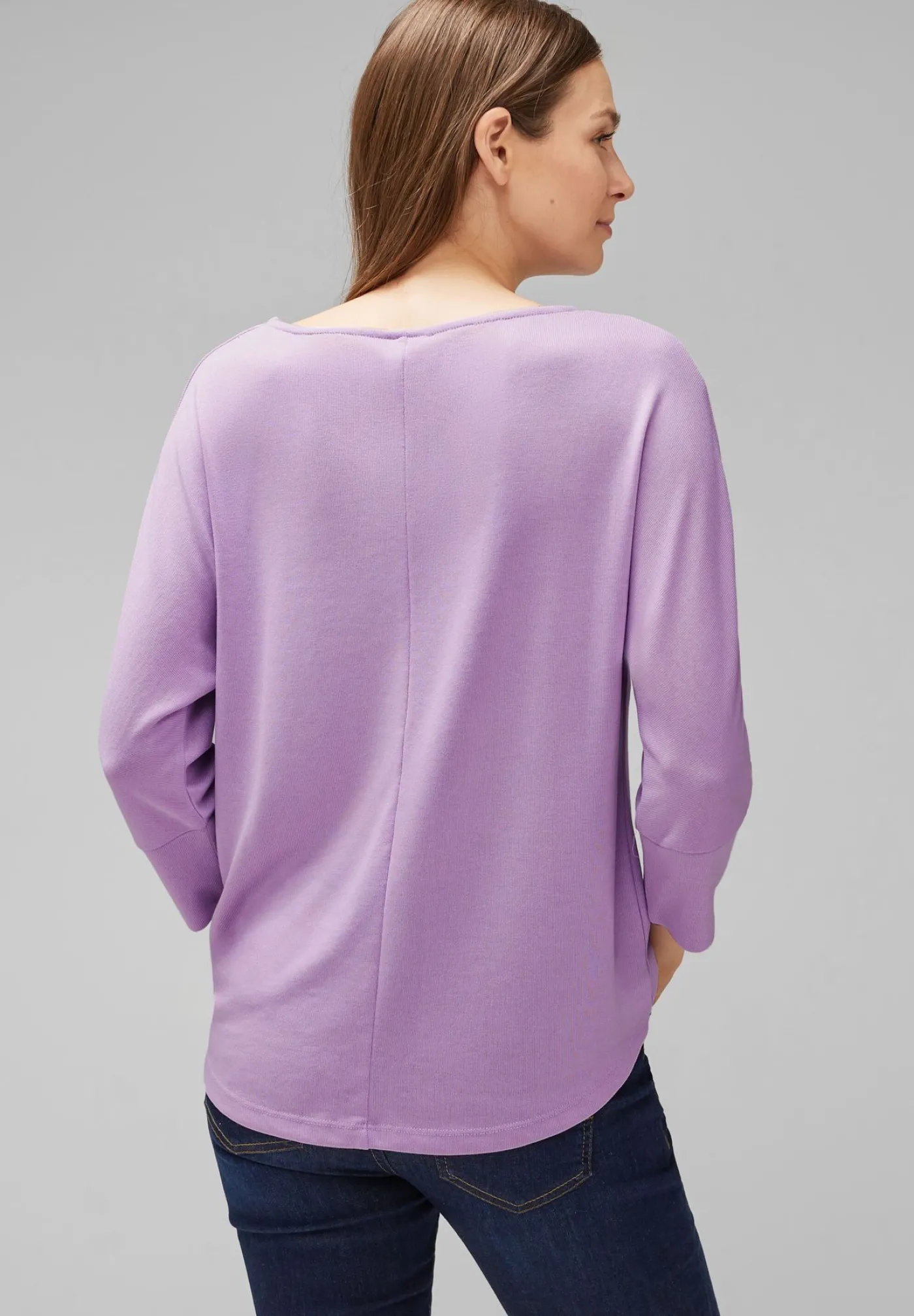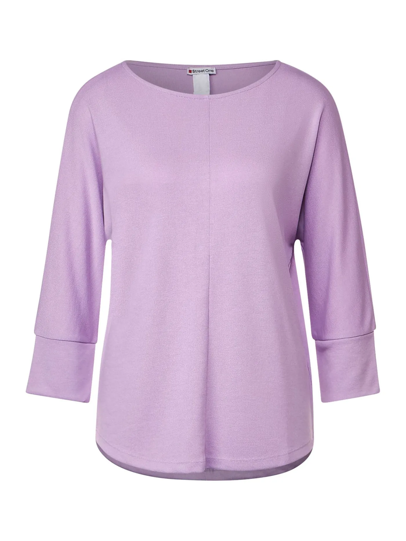 Basic pullover met driekwart mouwen en een ronde hals. Dit is zo’n basic die je in je garderobe kast moet hebben liggen. Het model heeft een fijn kleurtje lila wat eventueel te combineren is met een zwarte broek/pantalon.