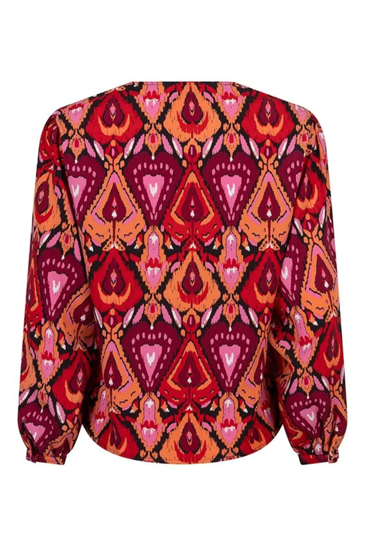 Kleurrijke blouse va Lofty manner. Dit hoort bij de nieuwe collectie. Deze blouse heeft een dunne en fijne stof en een all-over print. het heeft ook een knoop sluiting. Ook heeft die een v-hals. combineer dit met een pantalon voor een nette outfit.