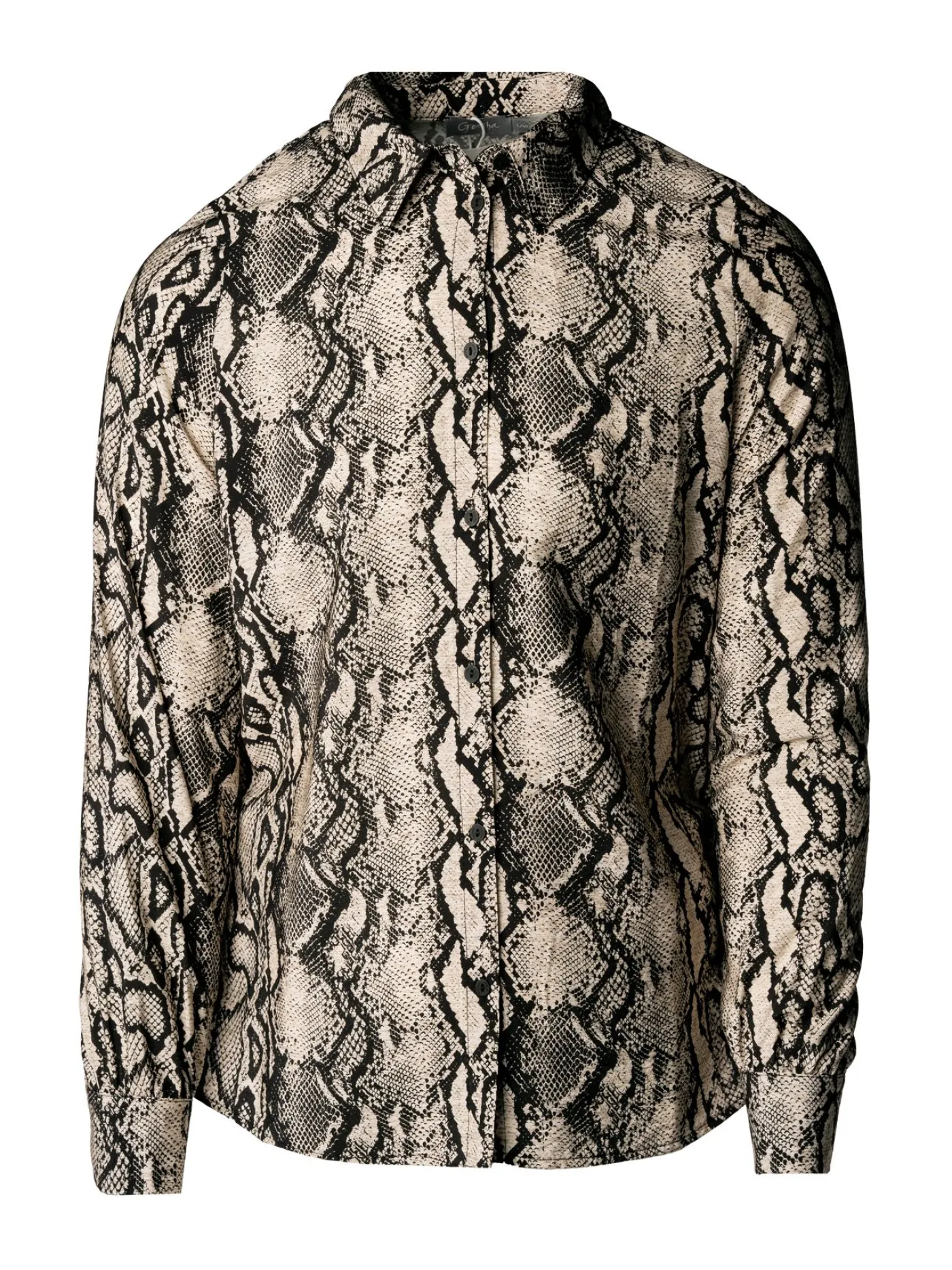Geisha blouse met een slangenprintje en zwarte sluitings knopen. De blouse heeft losse mouwen. Deze blouse is leuk te combineren met jeans en witte sneakers of leuke laarsjes.