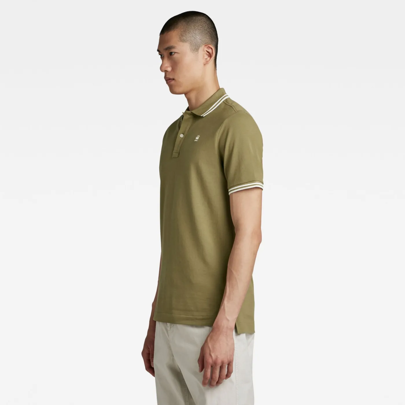Deze olijfgroene polo van G-Star heeft een gestreepte ribboord kraag- en mouwafwerking. Dit model heeft een authentieke polosluiting en zijsplitten. Verkrijgbaar in meerdere kleuren!
