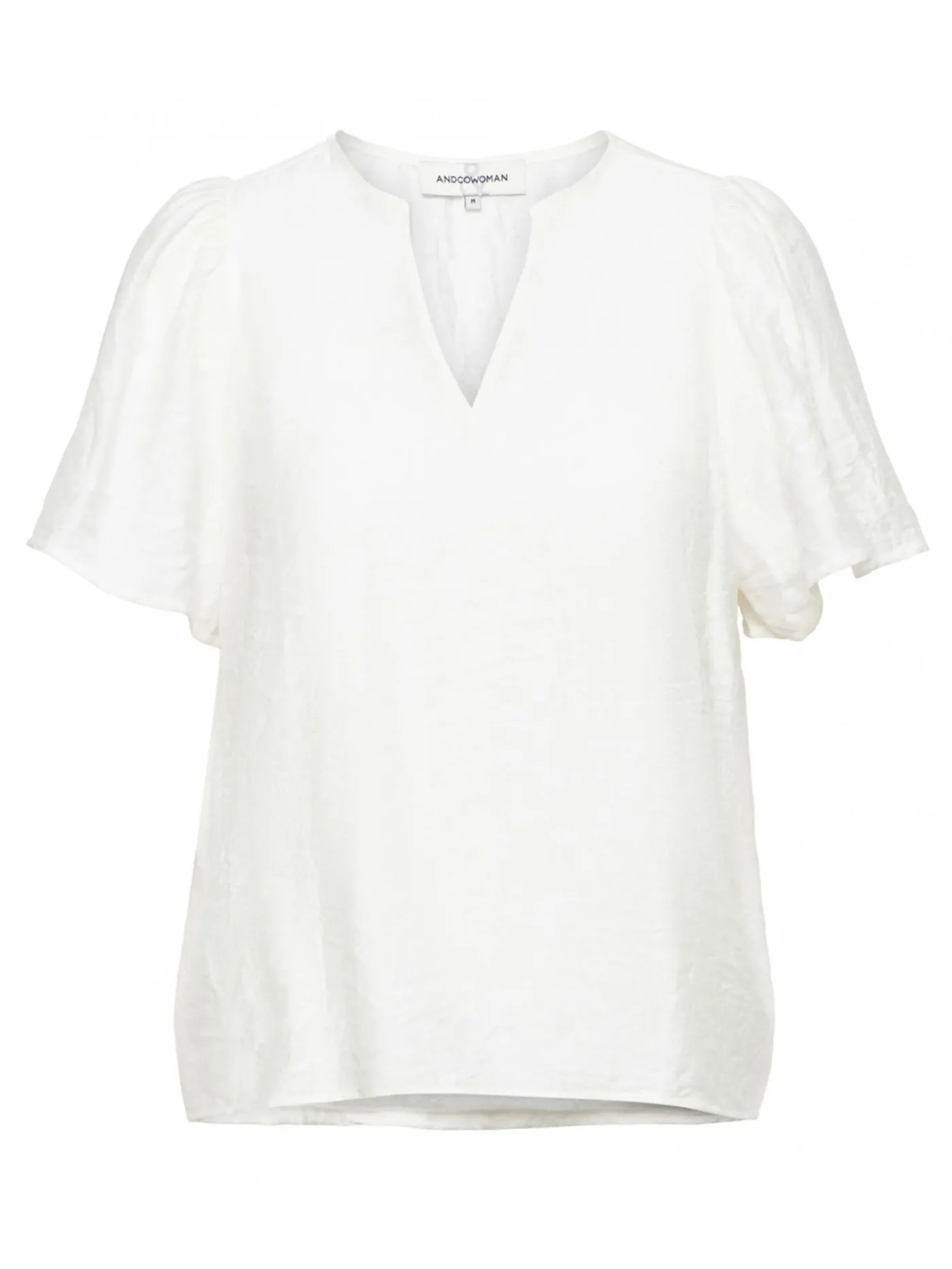 Wit T-shirt van het merk &co woman. Het T-shirt heeft korte mouwen en een V-hals. De stof is luchtig, daarom ideaal voor de zomer. Je kan het combineren met een leuke geprinte broek of rok eronder.