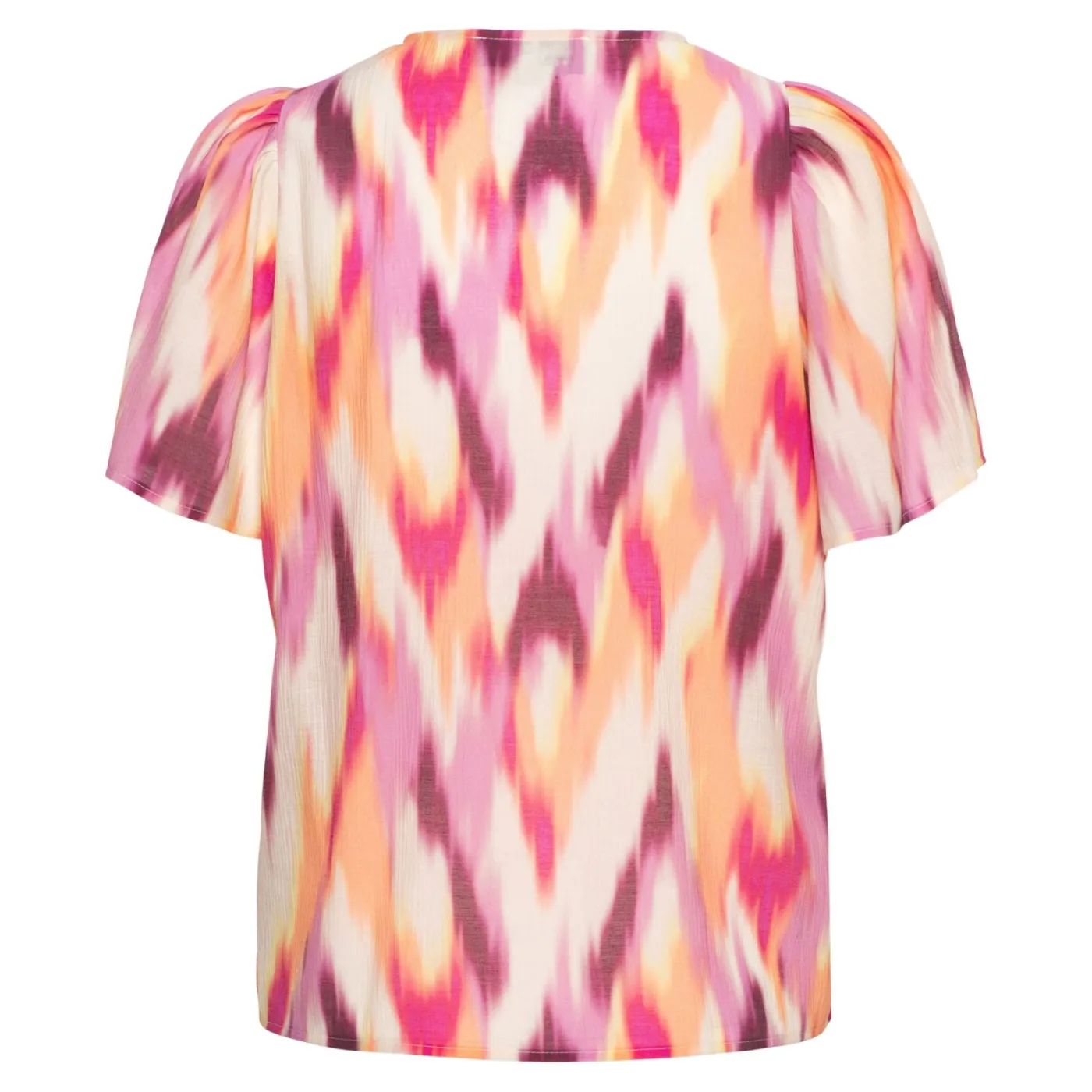 Deze vrolijk gekleurde luchtige top is van het merk &Co Woman. De top heeft een v-hals en korte wijde mouwen. De top is iets wijd uitlopend. Je kunt de top eventueel combineren met een lichte jeans voor een casual look!