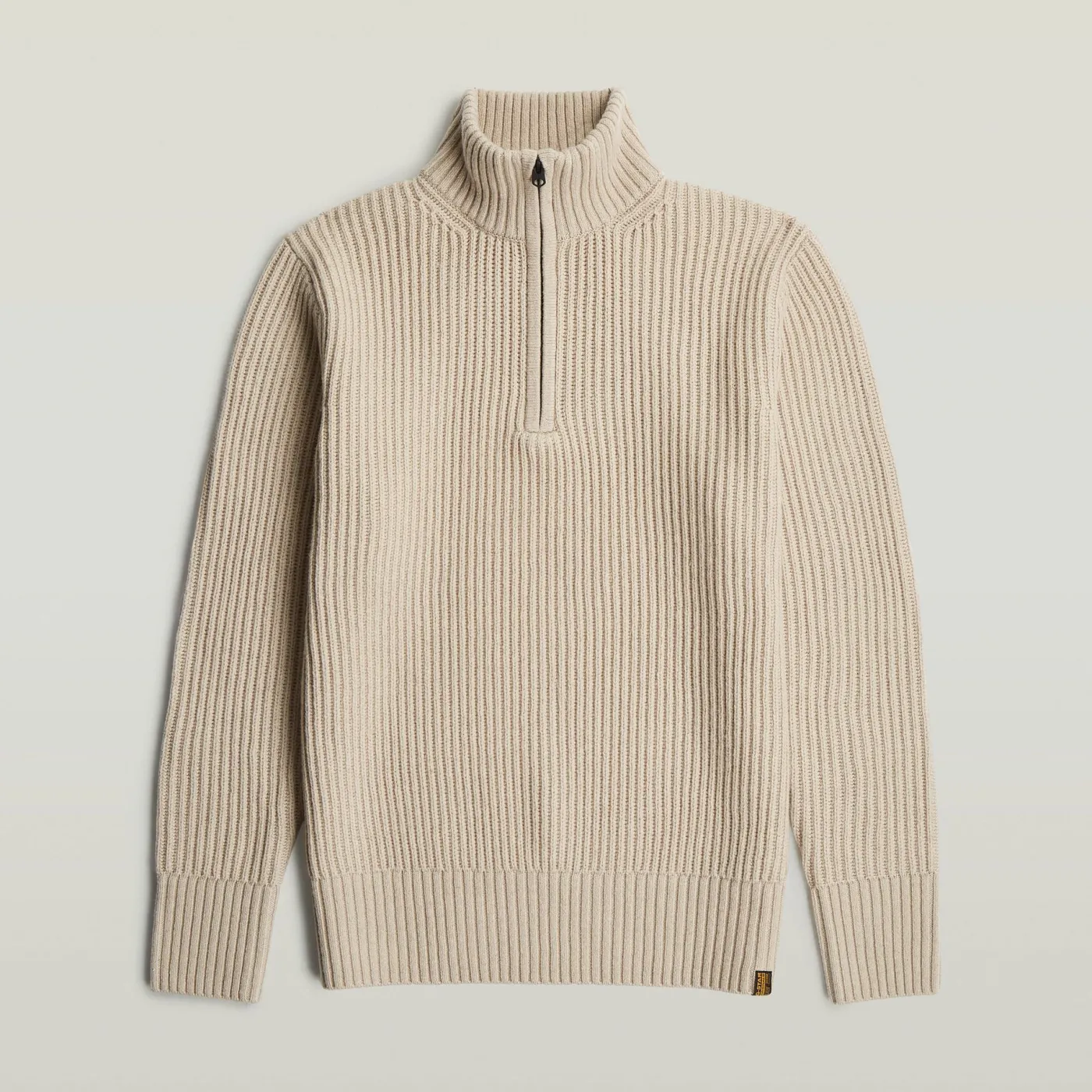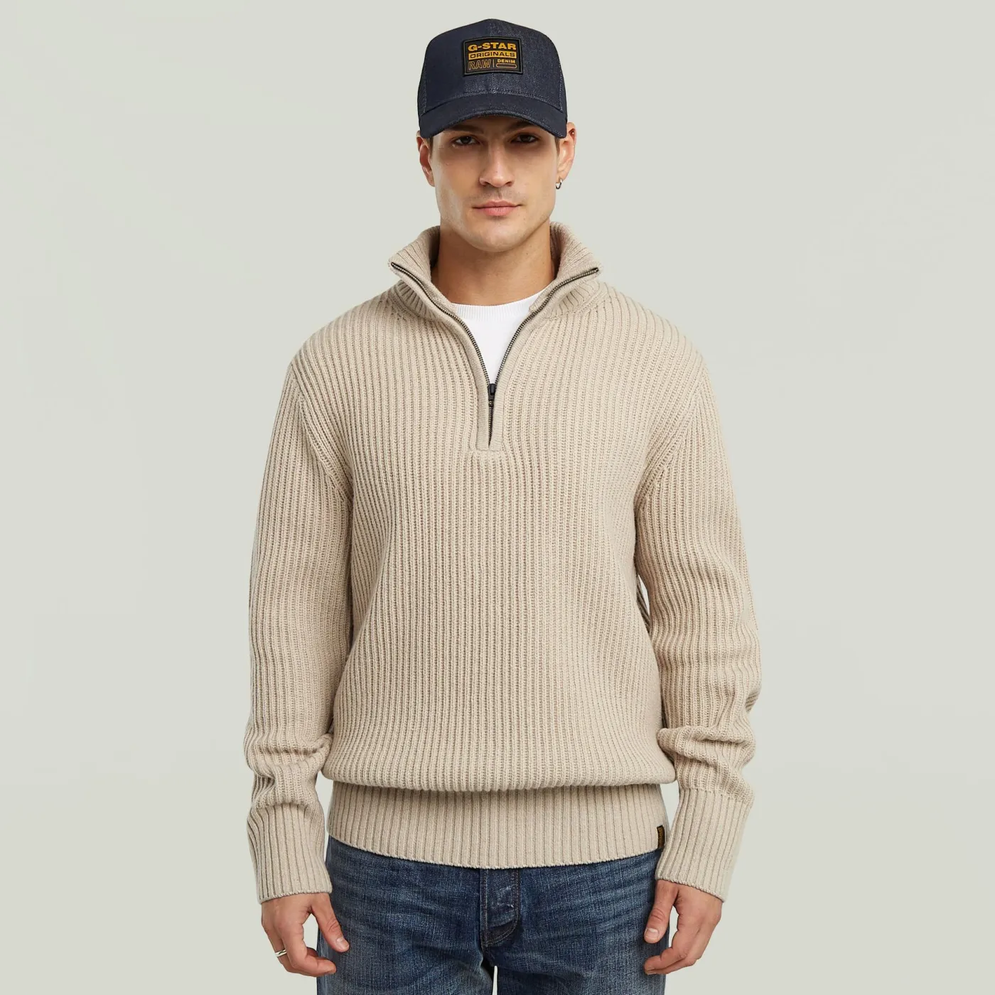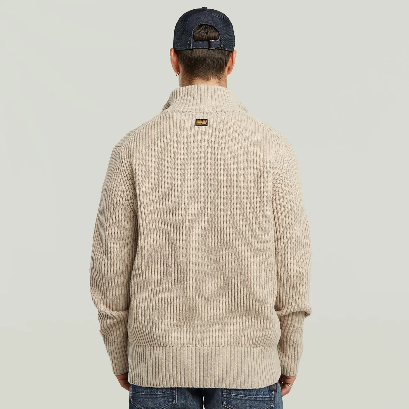 Deze beige zip sweater van G-Star is gemaakt van dikke, zachte wol en houdt je heerlijk warm tijdens koude dagen. De grove structuur en het minimalistische design geven de sweater een stoere, tijdloze uitstraling. Dankzij de ritssluiting kun je hem zowel open als dicht dragen voor extra comfort. Een hoogwaardige, stijlvolle basic die perfect past bij elke casual outfit.