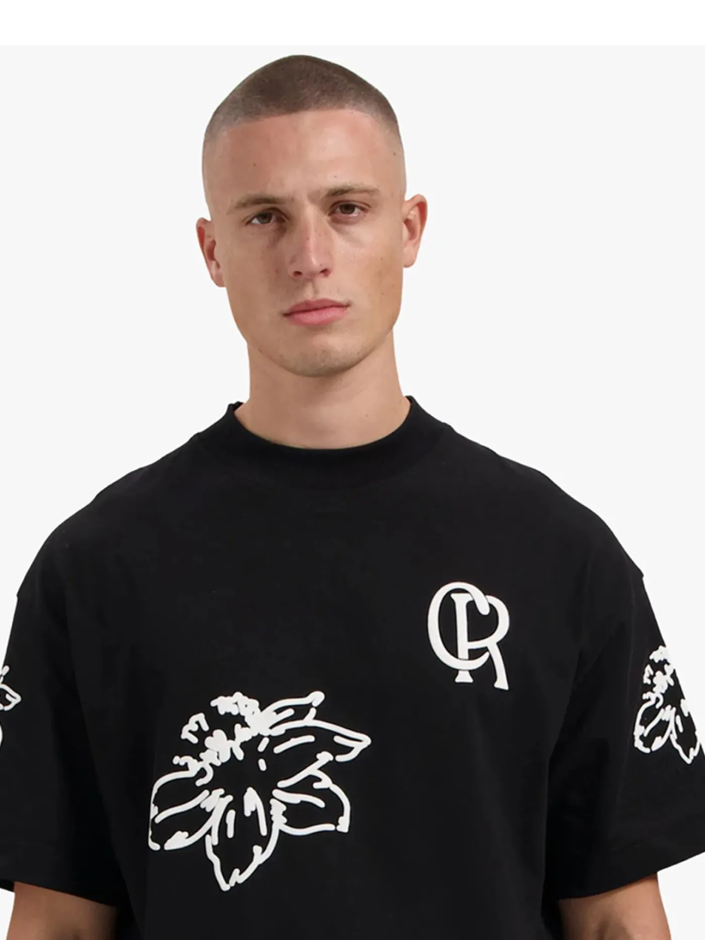 Dit zwarte T-shirt van Croyez springt in het oog door de verspreide bloemenprint over het hele design. Op de linker borst is het merk subtiel weergegeven, wat zorgt voor een stijlvolle balans tussen print en logo. Het shirt heeft een comfortabele regular fit en is gemaakt van hoogwaardige katoenkwaliteit. De donkere basis in combinatie met de kleurrijke bloemen zorgt voor een krachtig contrast. Een trendy statement piece dat je outfit direct karakter geeft.