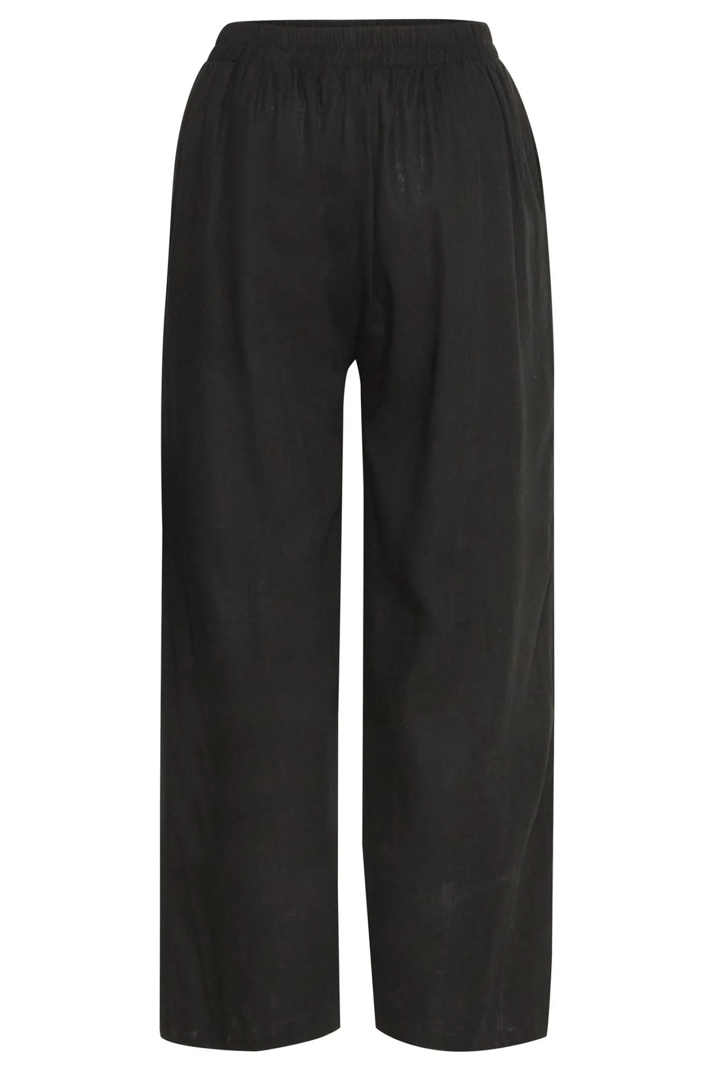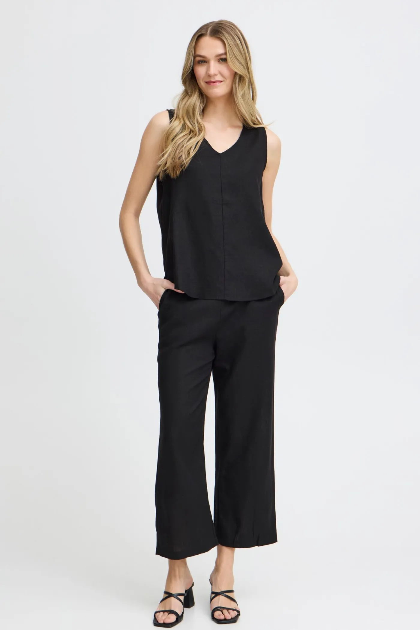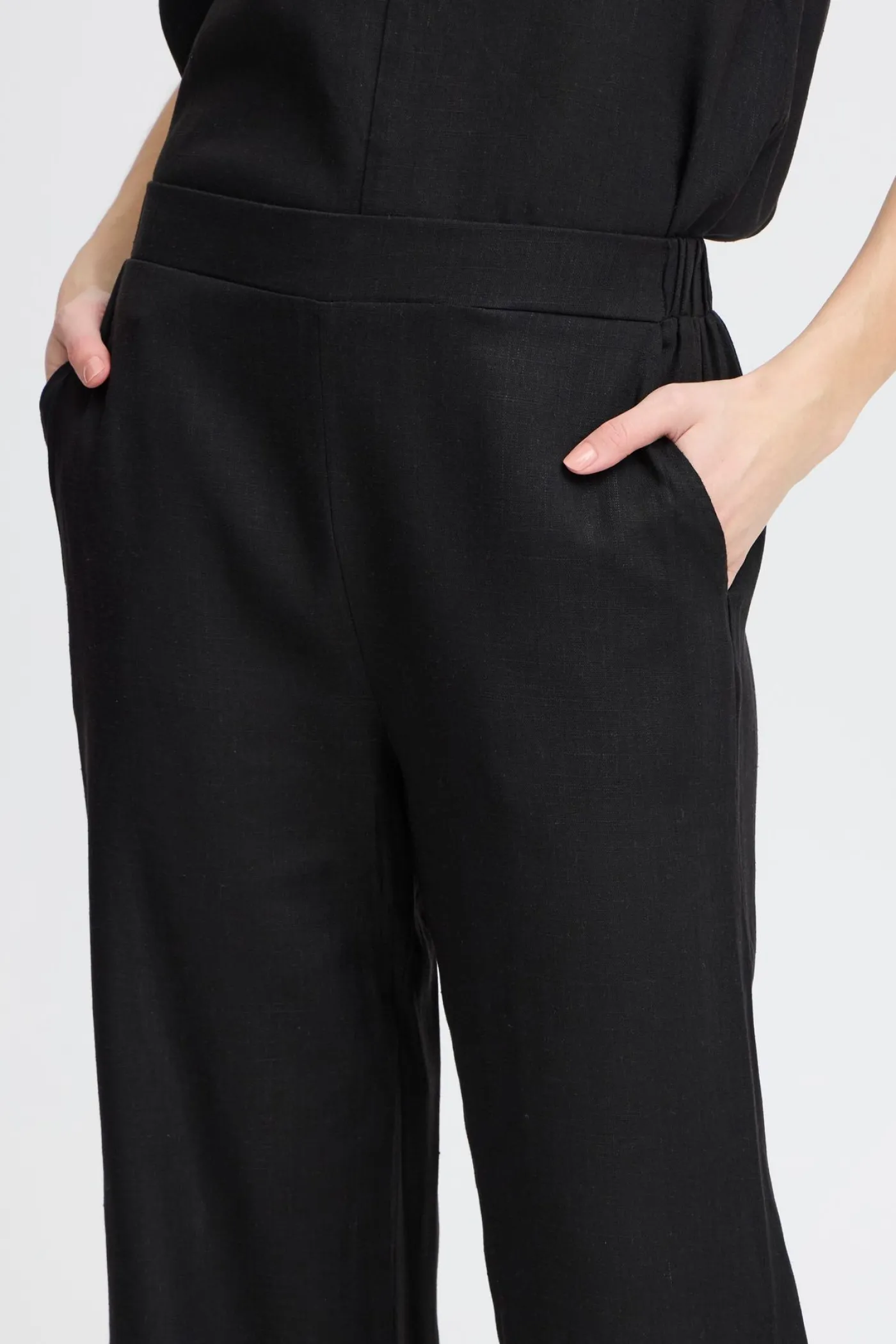 Deze leuke linnen pantalon van Fransa is een echte musthave voor komende zomer. De pantalon heeft een zwarte kleur, elastische tailleband en heeft steekzakken aan de voorkant. Door de linnen stof is de broek lekker luchtig om te dragen wanneer het warm is.