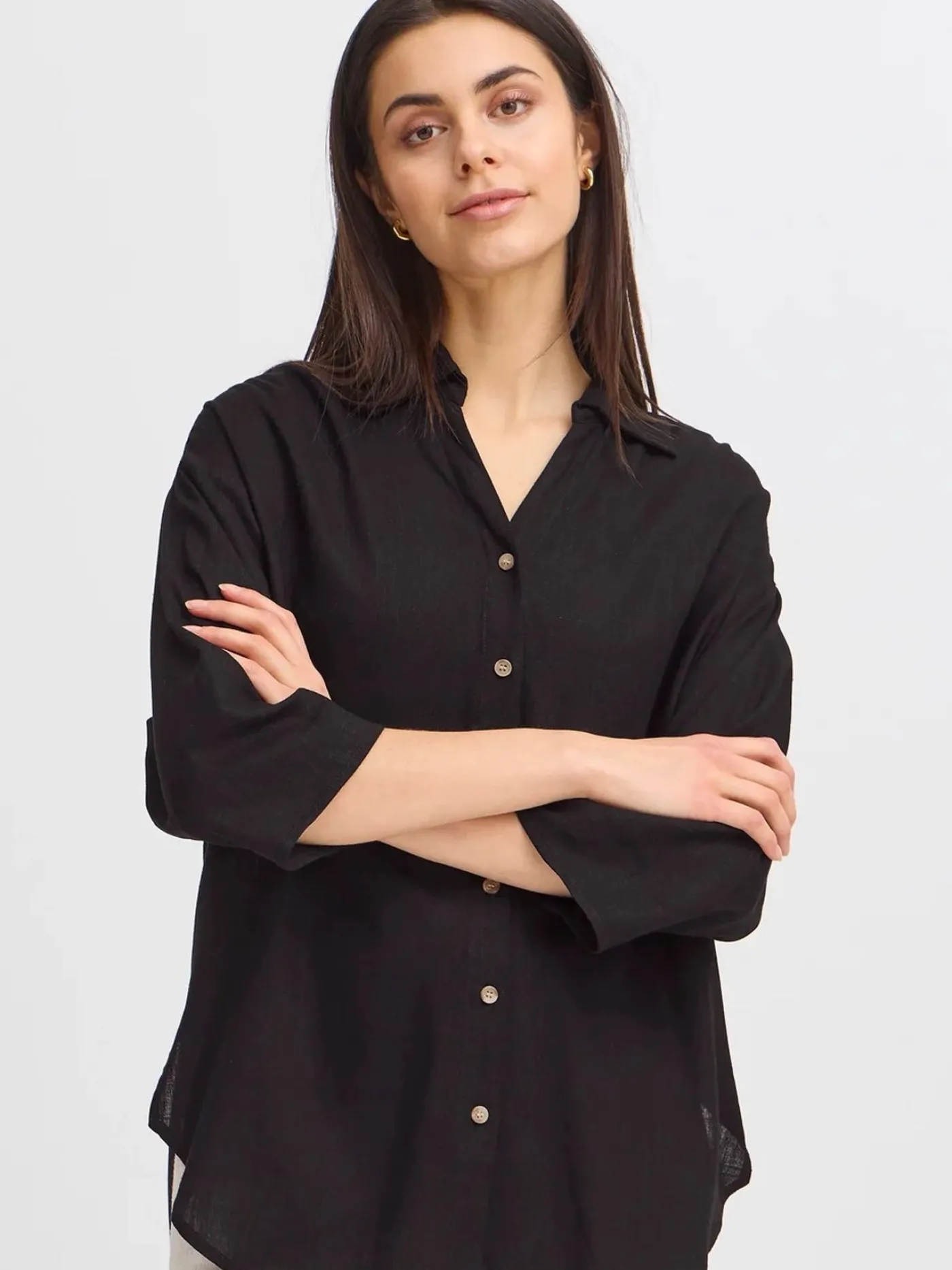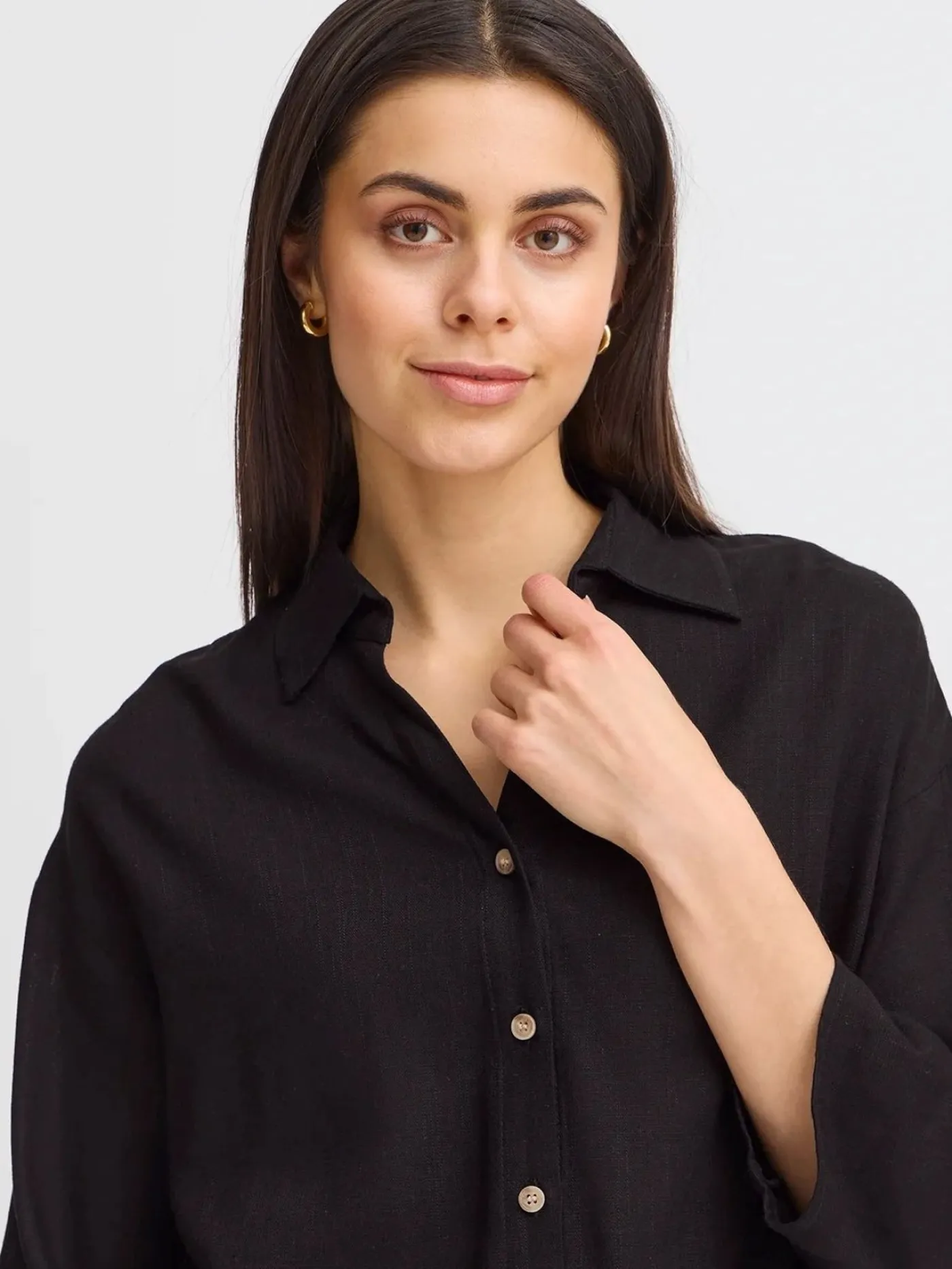 De FRJUNA SH 2 blouse van Fransa is een stijlvolle essential die niet mag ontbreken in je garderobe. Deze zwarte blouse heeft een vrouwelijke pasvorm en een klassiek design met kraag en knoopsluiting. De soepele stof zorgt voor een elegante uitstraling én heerlijk draagcomfort – perfect voor zowel kantoor als een avondje uit.