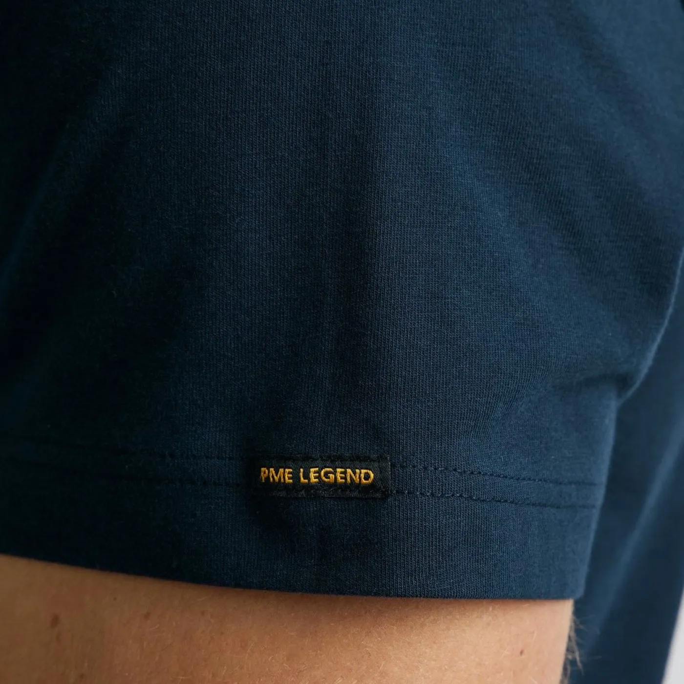Blauw T-shirt van het merk PME Legend. Het shirt heeft een ronde hals, korte mouwen en het logo in het geel op de voorzijde. Dit basic shirt is makkelijk te combineren met paar jeans en sneakers.