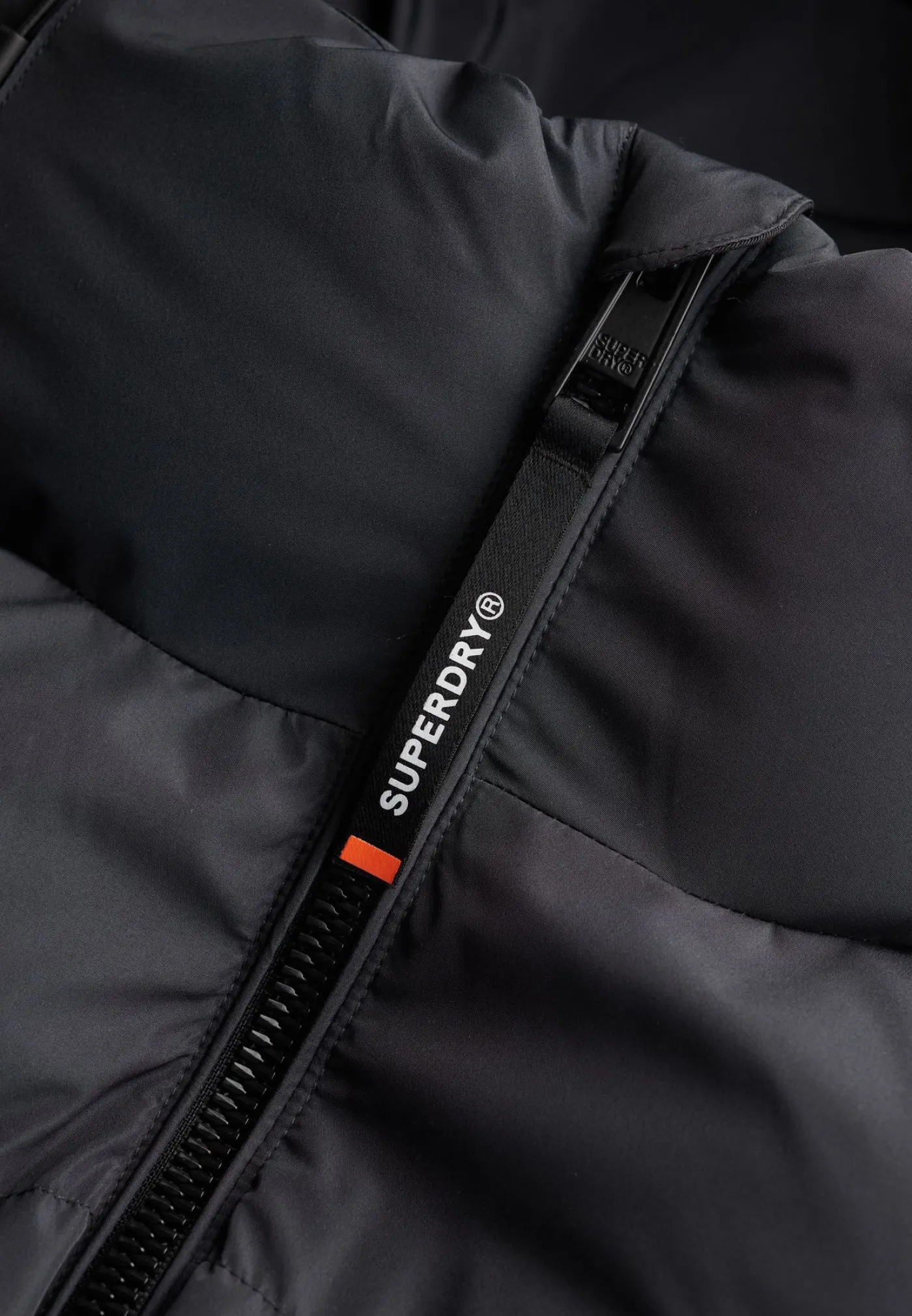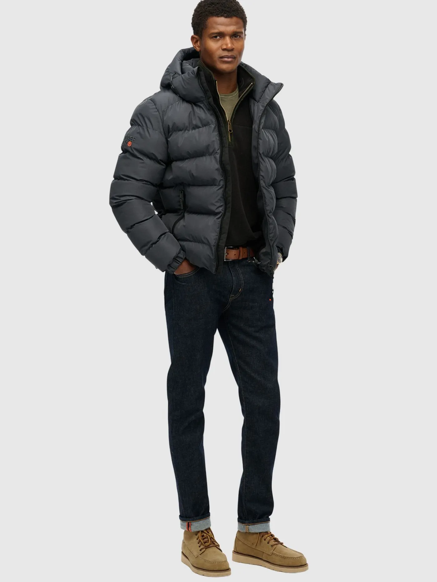 Deze heren pufferjas van Superdry in de kleur ebony is de perfecte mix van stijl en functionaliteit. De diepe donkerblauwe tint geeft de jas een stoere, moderne uitstraling die makkelijk te combineren is. Dankzij de dikke vulling en hoge kraag blijf je goed warm tijdens koude dagen. De jas is voorzien van een vaste capuchon, ritssluiting en handige steekzakken met rits. Afgewerkt met een subtiel Superdry-logo voor een herkenbare touch. Ideaal voor dagelijks gebruik in de winter.