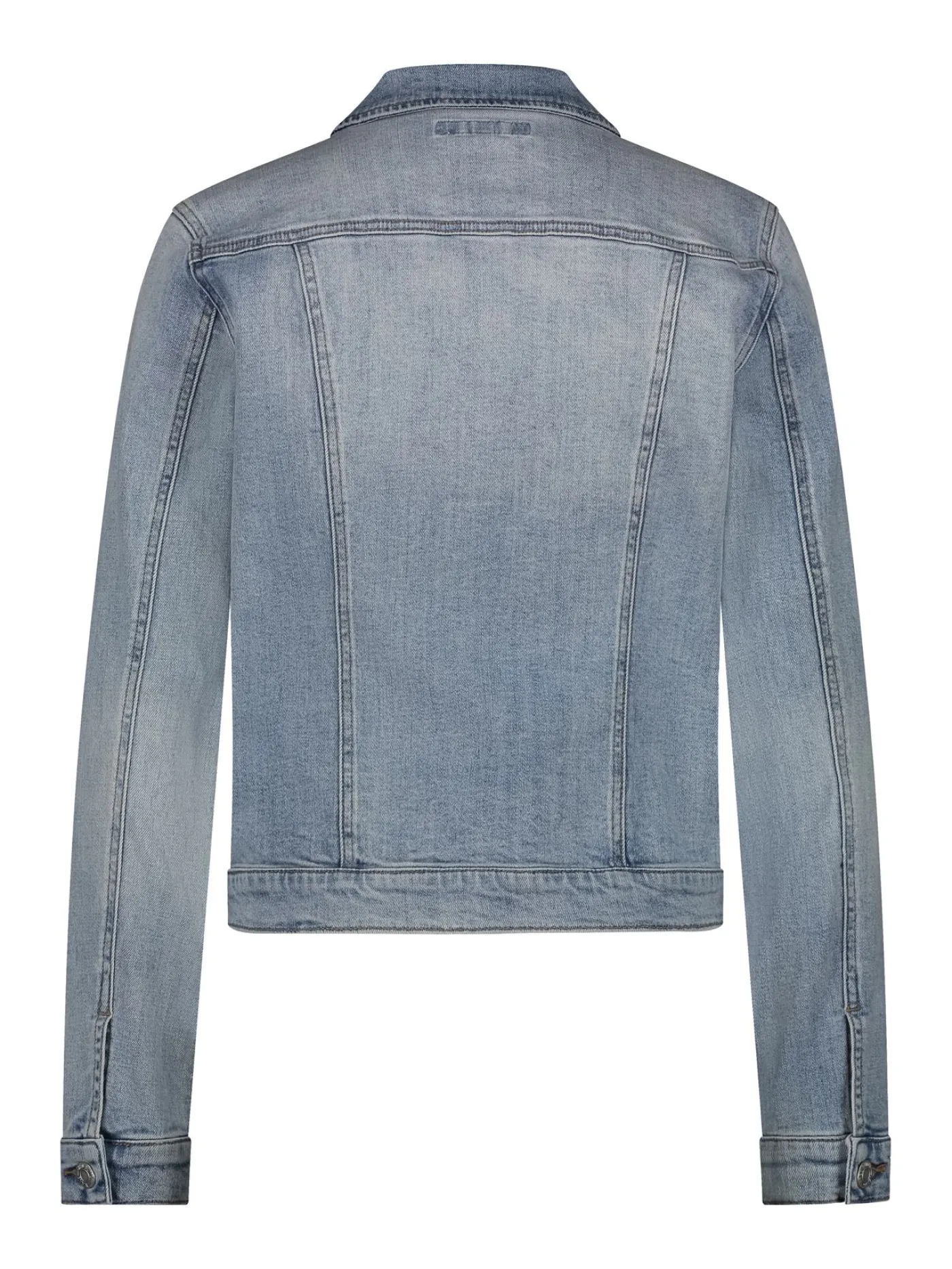Dit spijkerjasje in een lichte jeanskleur is van het merk Red Button. De spijkerjas heeft twee borstzakken en zilveren knopen. Stijl met een jurk of pantalon en blouse voor een frisse lentelook. Ook verkrijgbaar in een andere jeanskleur.