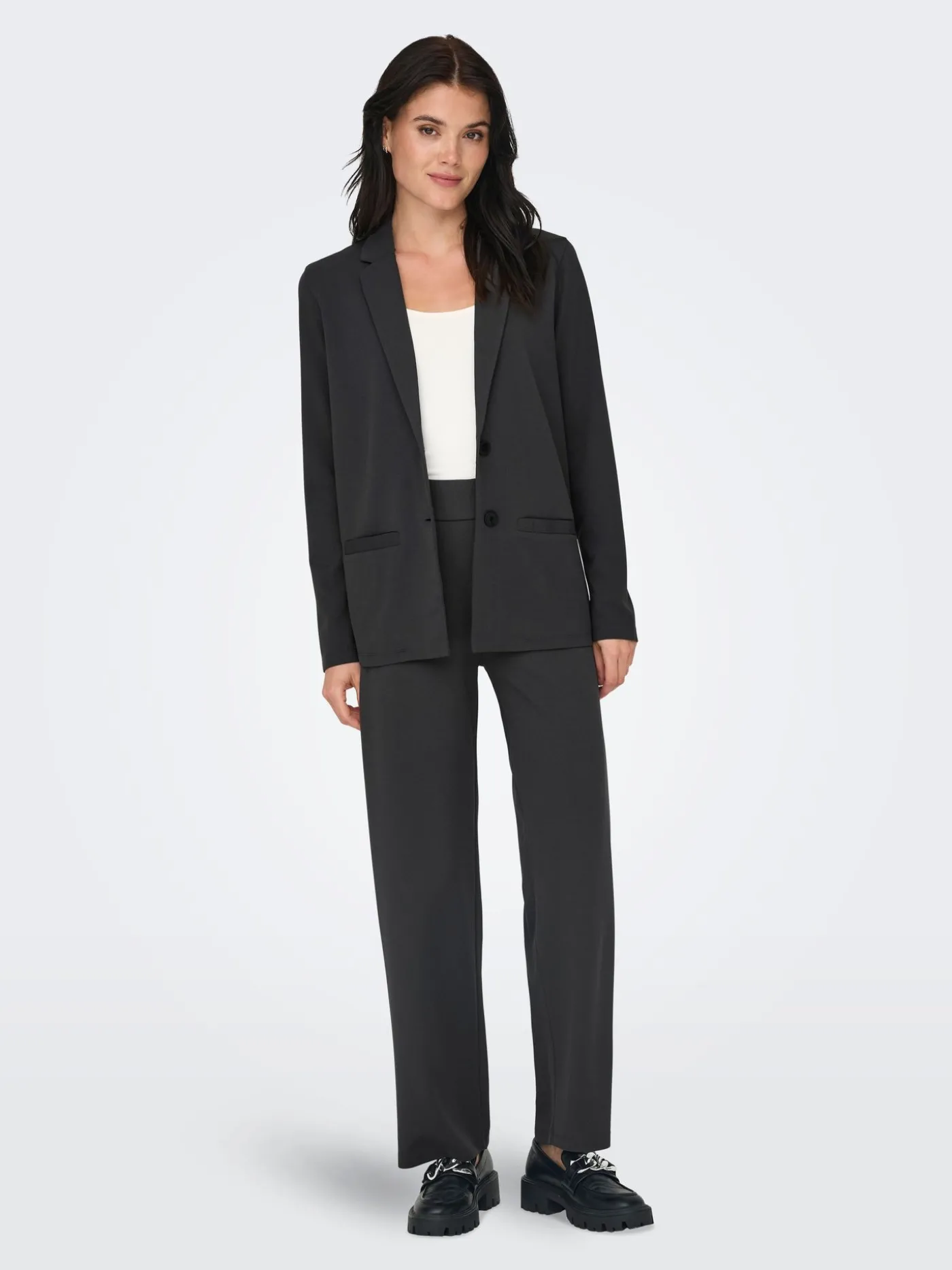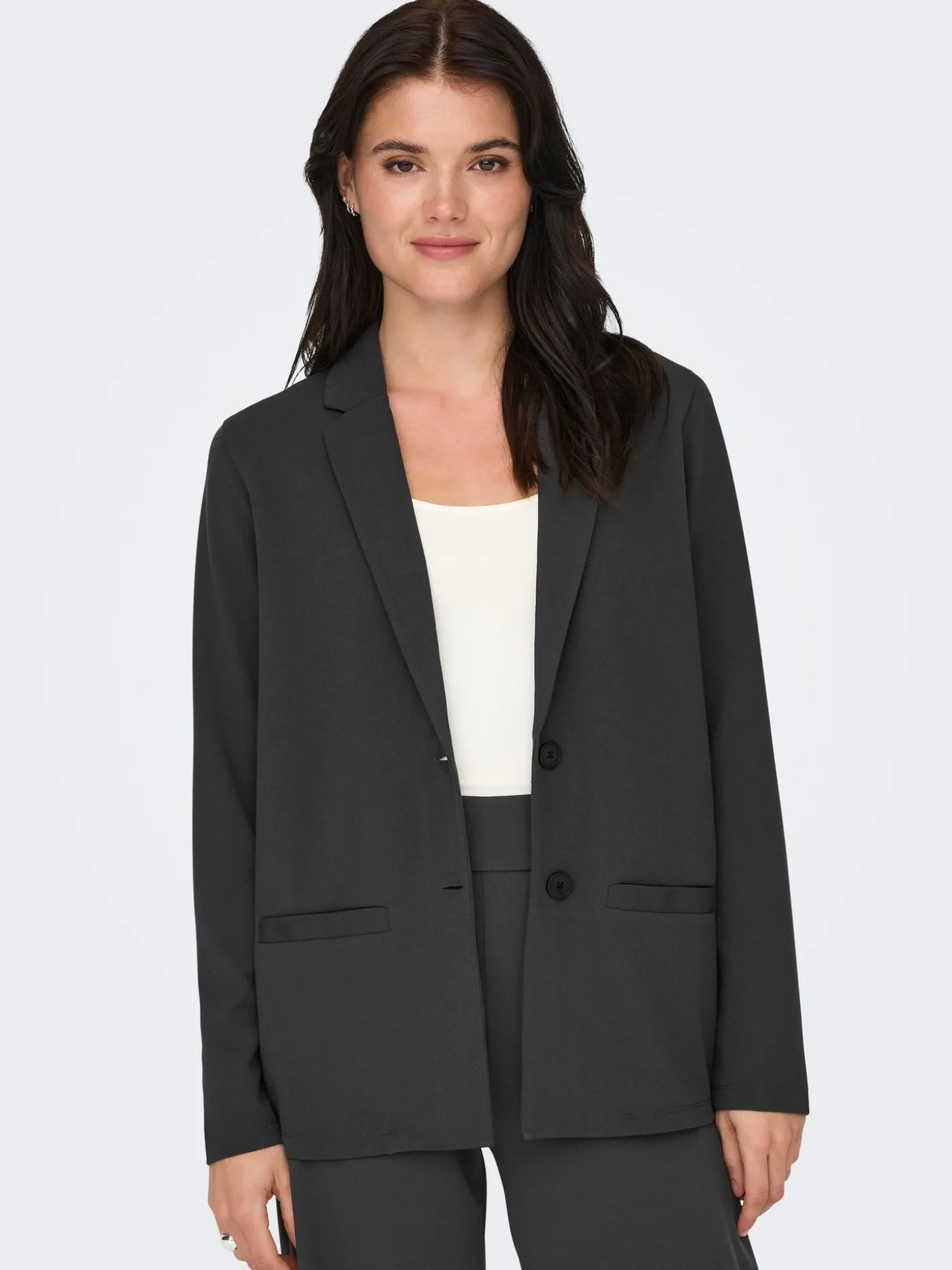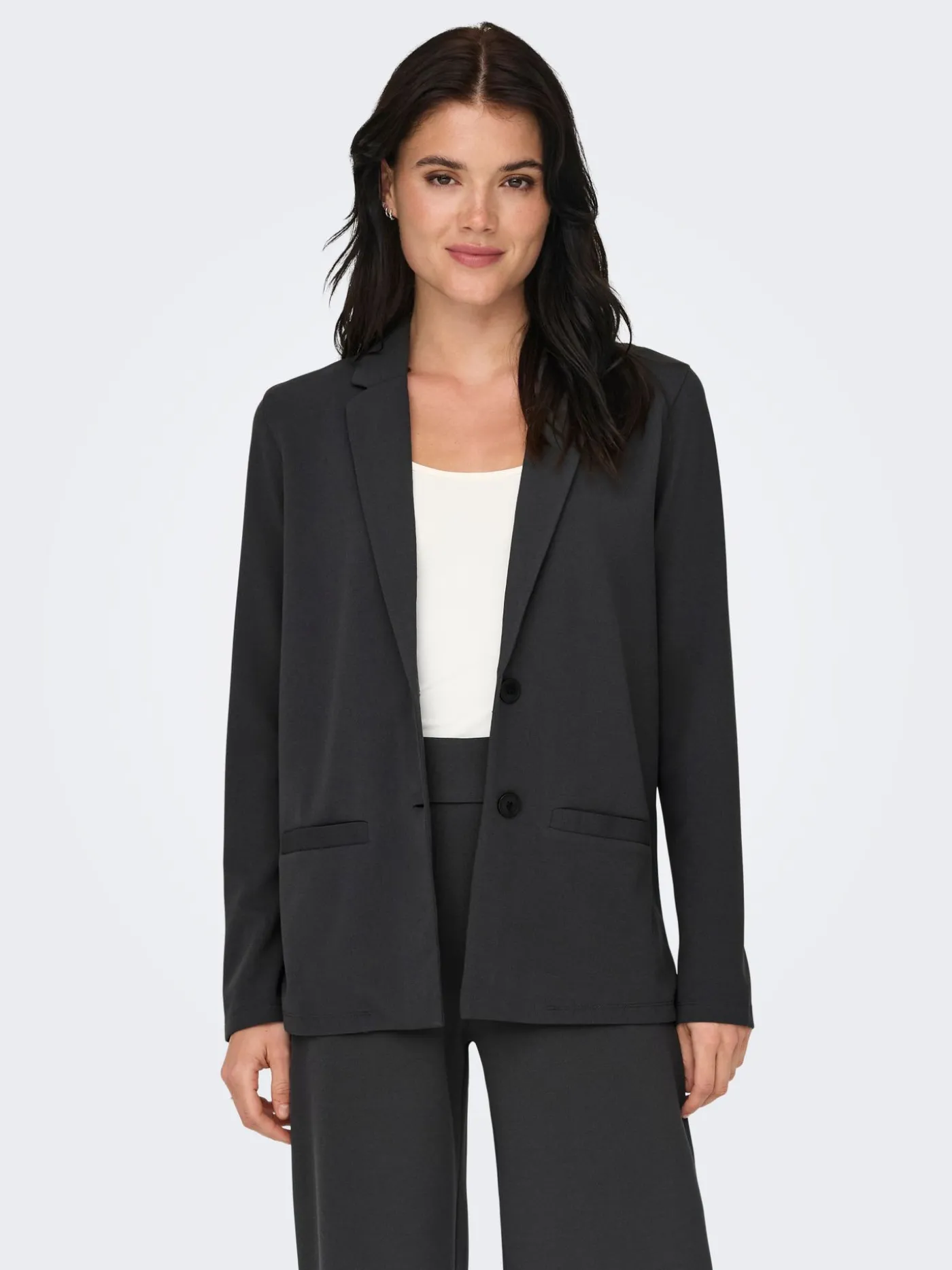 Deze grijze blazer van JDY is een veelzijdig item dat moeiteloos te combineren is. De blazer heeft een tijdloze snit met een nette kraag en sluit met een enkele knoop. Dankzij de lichte, elastische stof zit hij comfortabel en past hij bij zowel casual als geklede outfits.