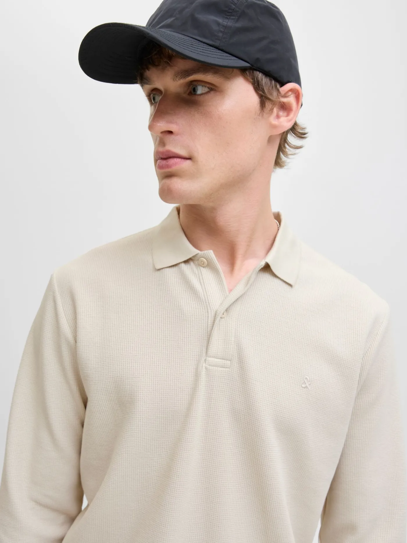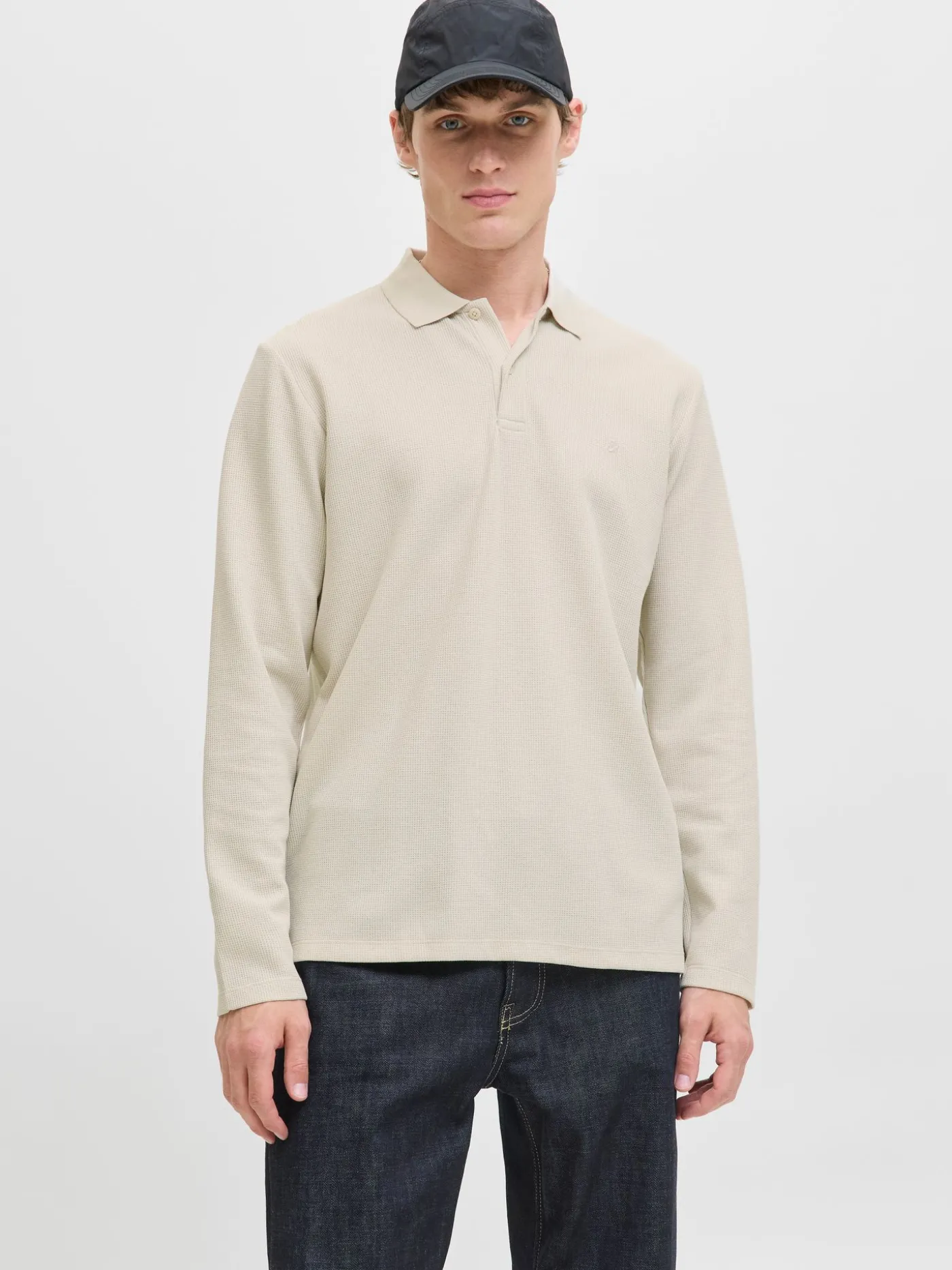 Deze longsleeve van Jack & Jones voor heren heeft een regular fit en een klassieke polokraag met knoopsluiting. Het beige model is veelzijdig en eenvoudig te combineren met jeans of chinos voor een verzorgde, casual look. De fijne stof zorgt voor comfort en een nette uitstraling, perfect voor zowel werk als vrije tijd.