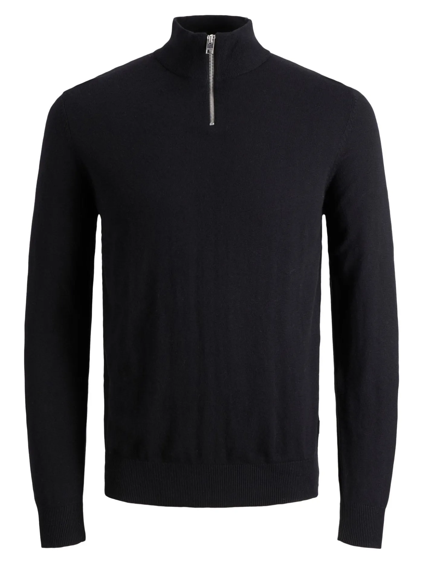 Zachte zwarte trui met hoge hals en rits van het merk Jack & Jones. Deze regular fit trui is eindeloos te combineren en draagt heerlijk comfy door de zachte stof. De trui is afgewerkt met geribde boorden aan de mouwen, kraag en onderkant. Draag de kraag omhoog als het wat kouder is, of rits hem open en sla hem om.