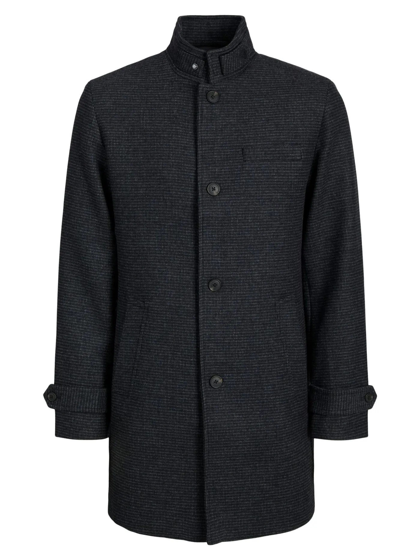 Nette grijze heren jas van Jack & Jones met twee zakken en een sier zak aan de voorkant. De jas is van een fijne stof gemaakt. Je sluit deze jas meet knoopsluiting.