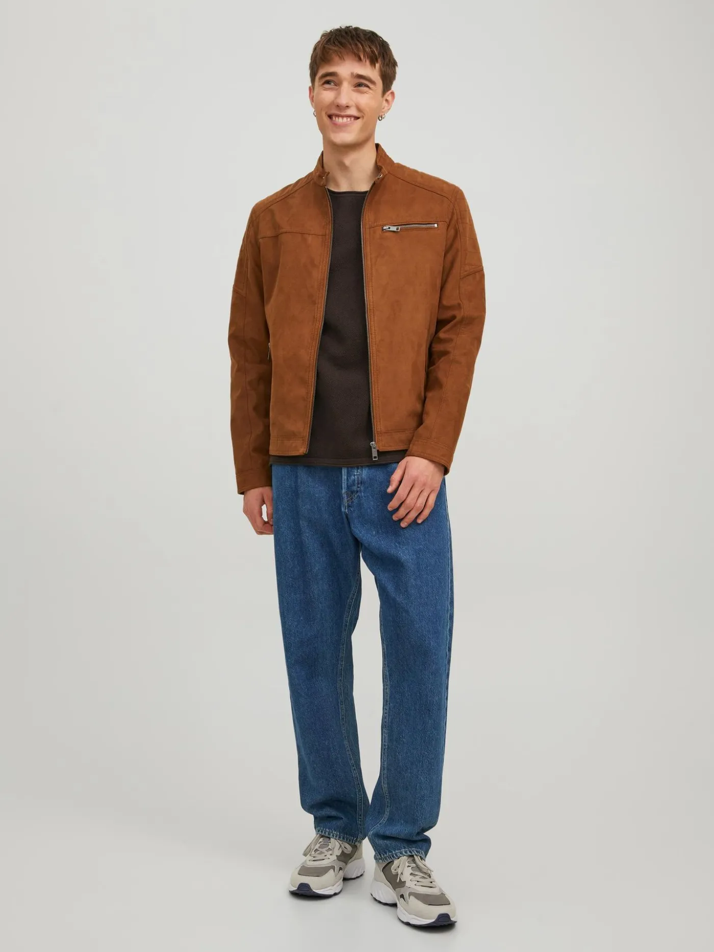 Deze jas van Jack & Jones is gemaakt van suéde het is voorzien van manchetten. Dit model heeft een ronde hals met een drukknoop en sluit met een rits. Ook heeft het een borstzak die sluit met een rits, twee ritszakken aan de voorkant en een binnenzak.