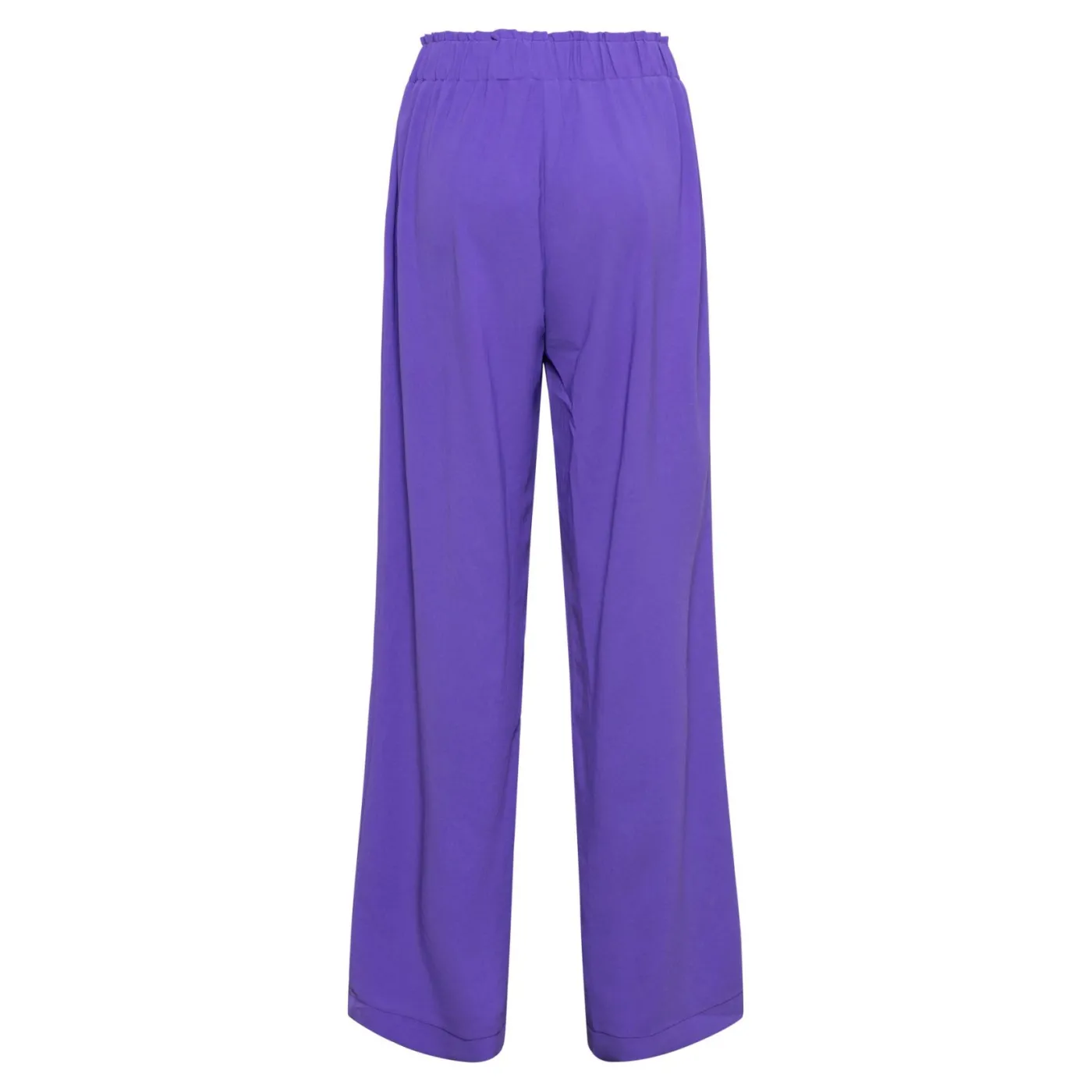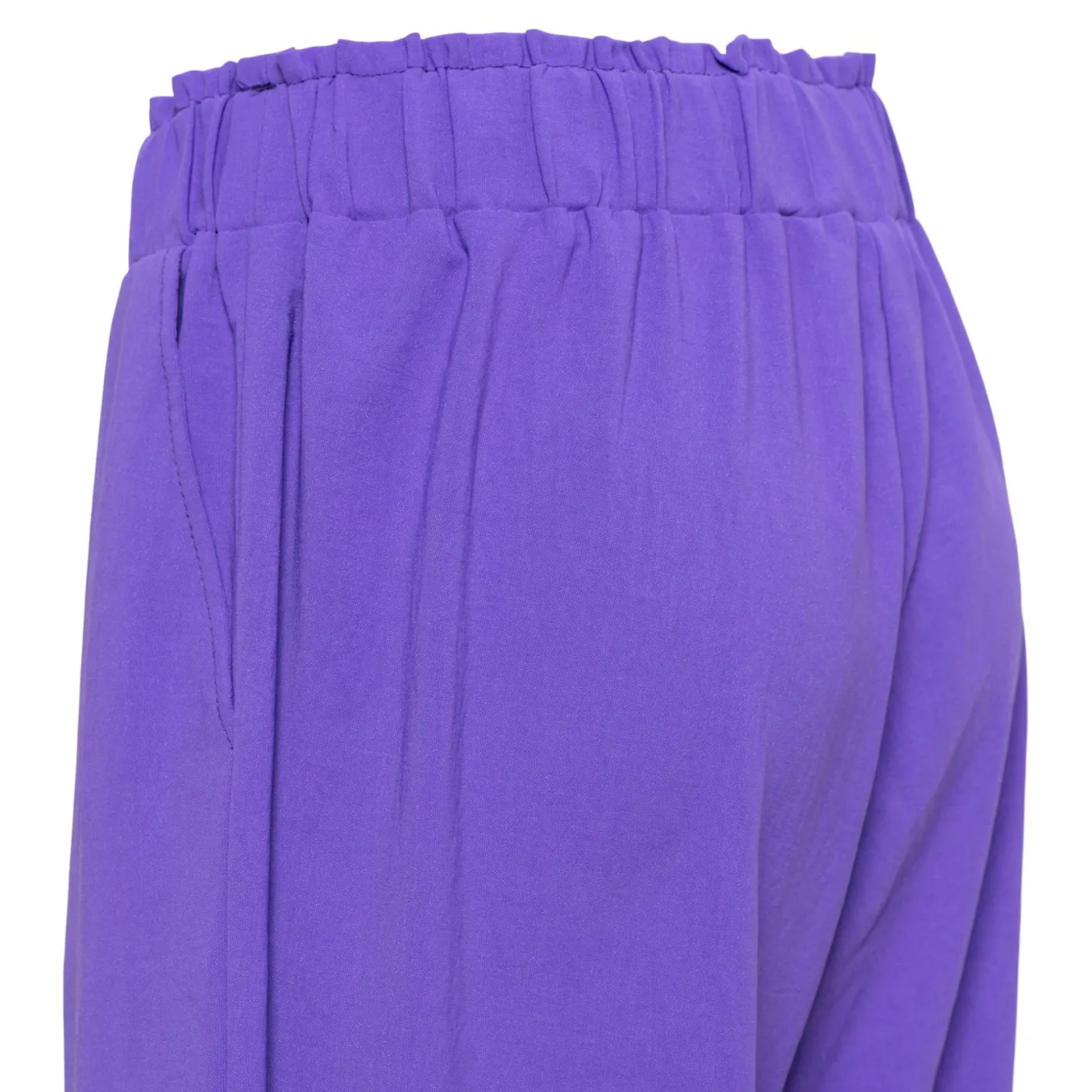 Deze paarse pantalon kan je een casual look meemaken of juist een chique look. De broek is van het merk &Co Woman en heeft een elastische band aan de bovenkant.