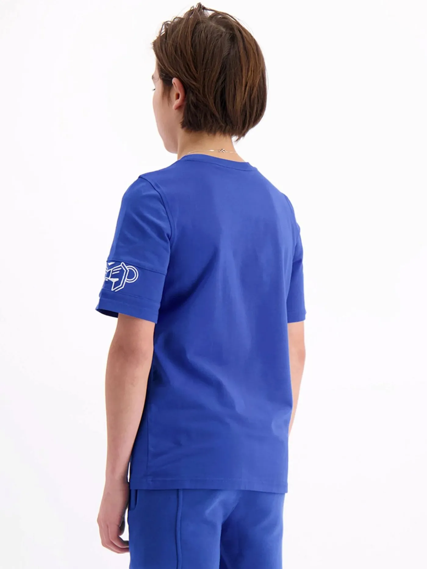 Dit blauwe shirt van Black Bananas is een basic shirt maar door de band op de linker mouw maakt het hem uniek.