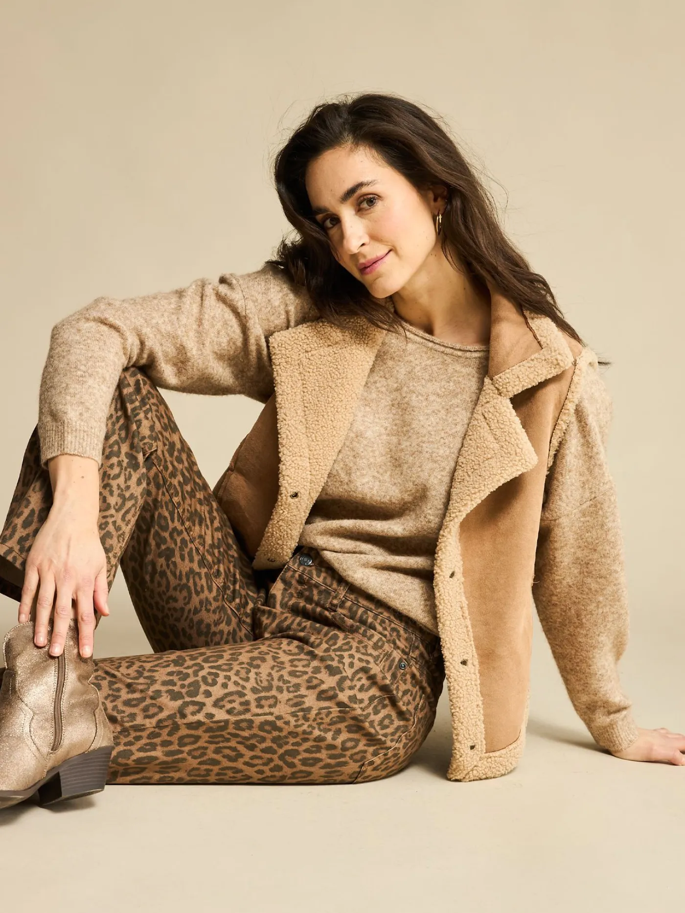 Deze broek van Red Button heeft een gedurfde en opvallende panterprint in zwart op een donkergrijze basis. De echte panterprint geeft de broek een stoere, wild geïnspireerde look, terwijl de straight fit pasvorm zorgt voor een rechte, comfortabele uitstraling. De broek is perfect voor een trendy casual look en is gemakkelijk te combineren met zowel een eenvoudige top als een chique blouse. Het materiaal biedt de hele dag door comfort en de print voegt net dat beetje extra flair toe aan je outfit.