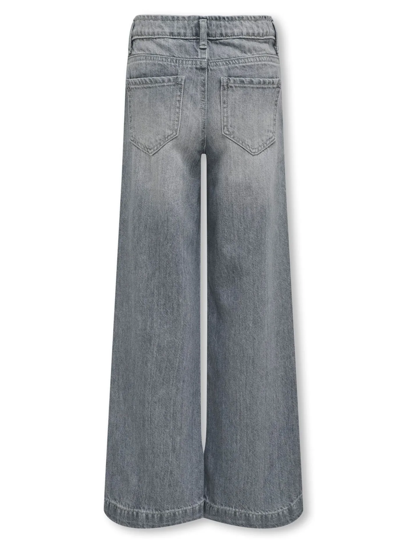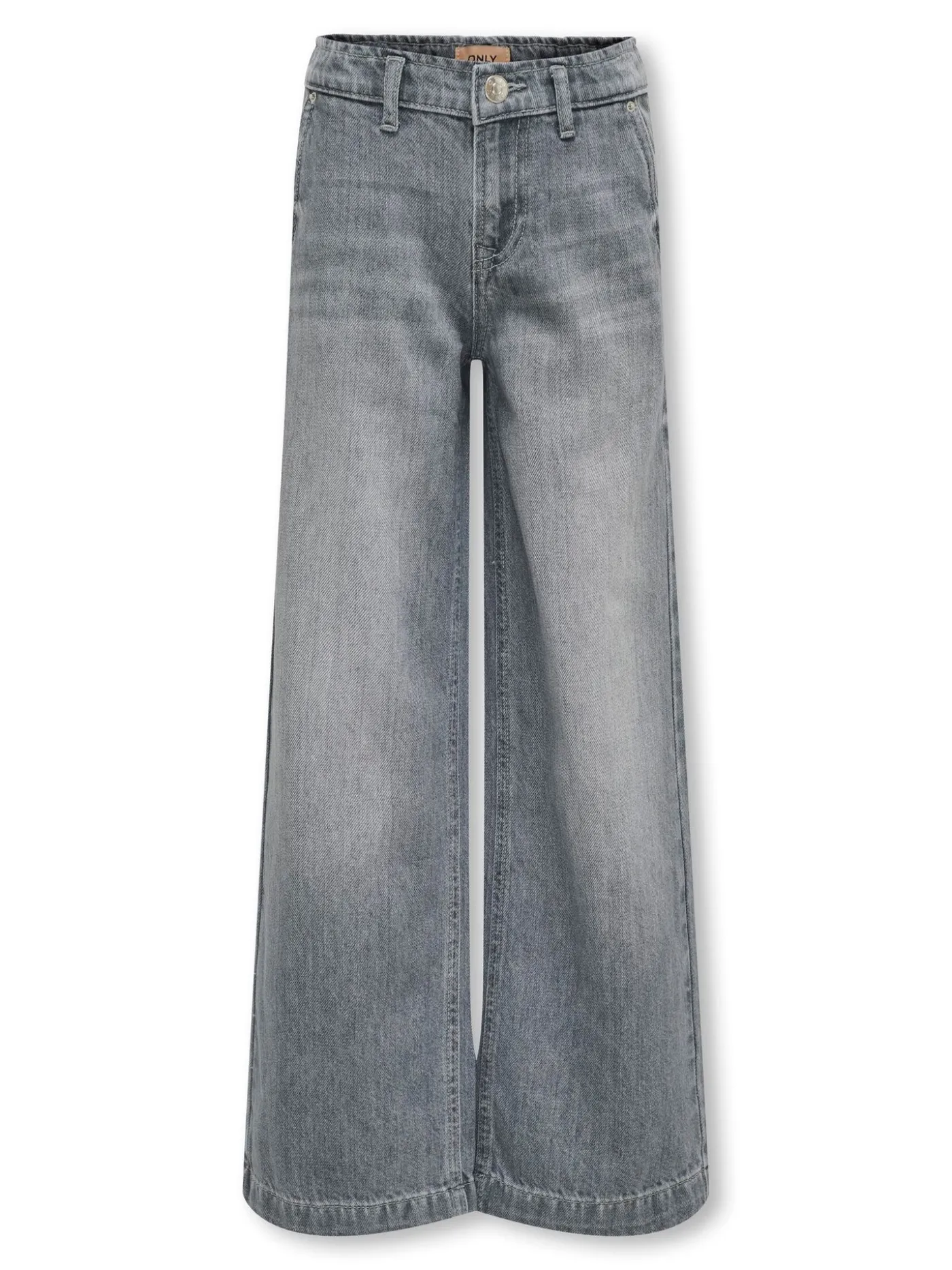 Wide leg jeans van het merk Only. Dit trendy item heeft achterzakken, riemlussen en een verstelbare elastische tailleband. Ideaal voor de kleine fashionista. Combineer de broek met een casual wit t-shirt en een paar stoere hoge sneakers en je outfit is ready to go.