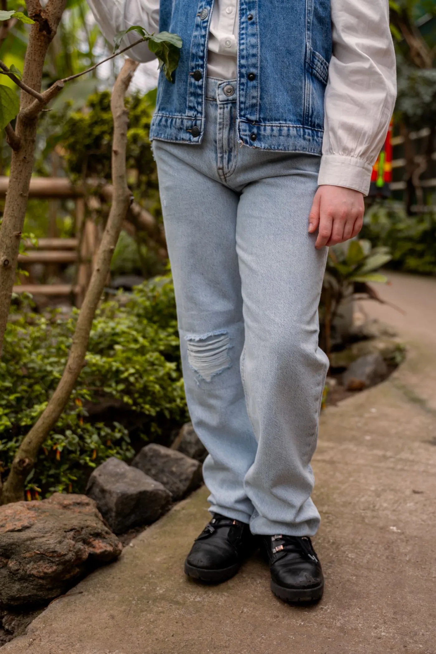 Op zoek naar een jeans met straight fit model? Deze jeans heeft een beetje ruimte bij de dij en comfortabele rechte pijpen tot aan de zoom. Het heeft een zomerse lichte wassing, goed te combineren met een paar trendy sneakers + witte blouse en je outfit is ready to go! Met deze broek steelt deze fashionista de show.