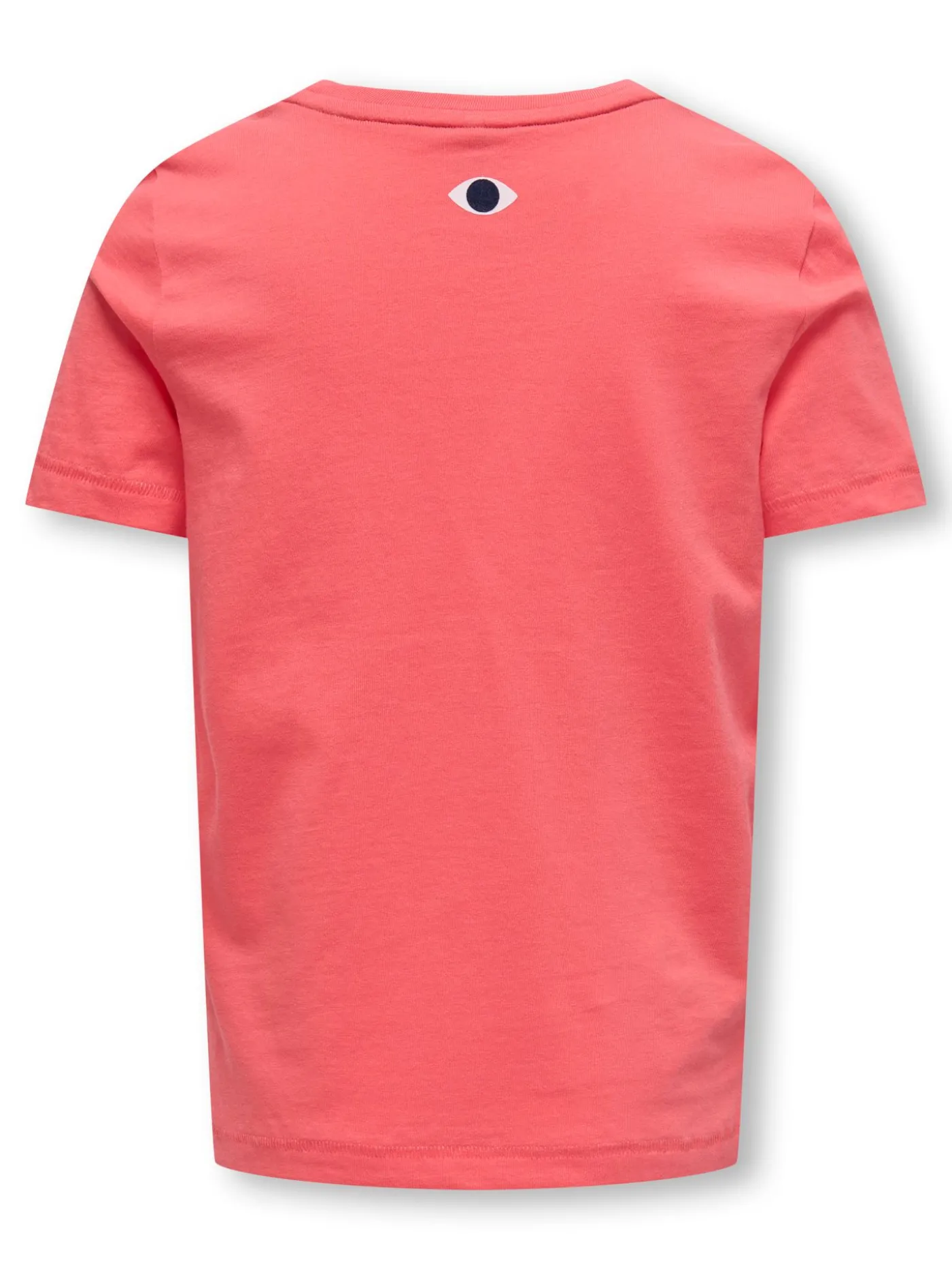 Dit rood/roze gekleurde t-shirt van Only Kids is een echte musthave voor komende zomer. Naast dat het shirt een lekker zomers kleurtje heeft is het ook gemaakt van katoen, heerlijk om te dragen in de zomer. Op de voorkant heeft het shirt een kleine opdruk op de borst. Het item heeft korte mouwen en een ronde hals.