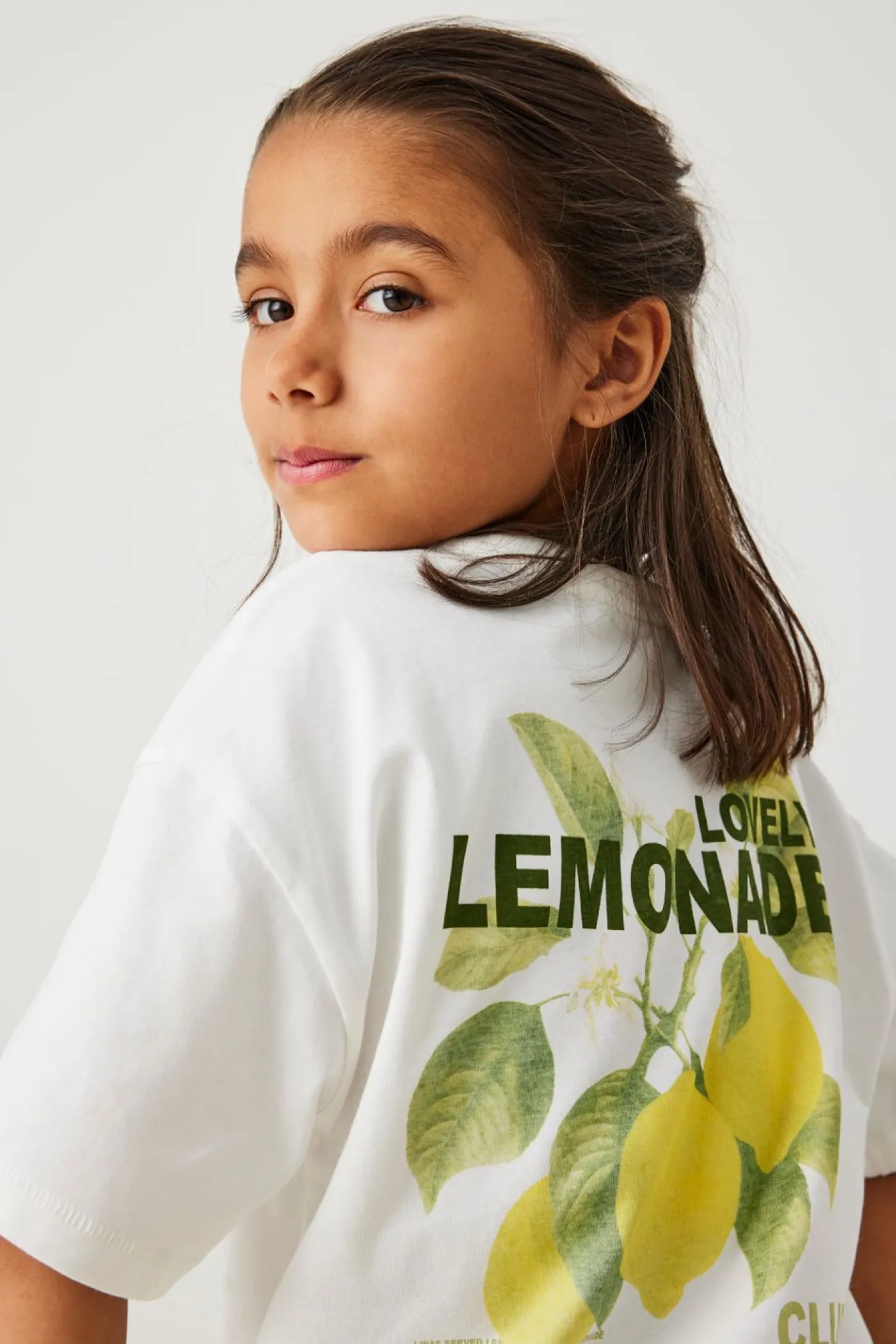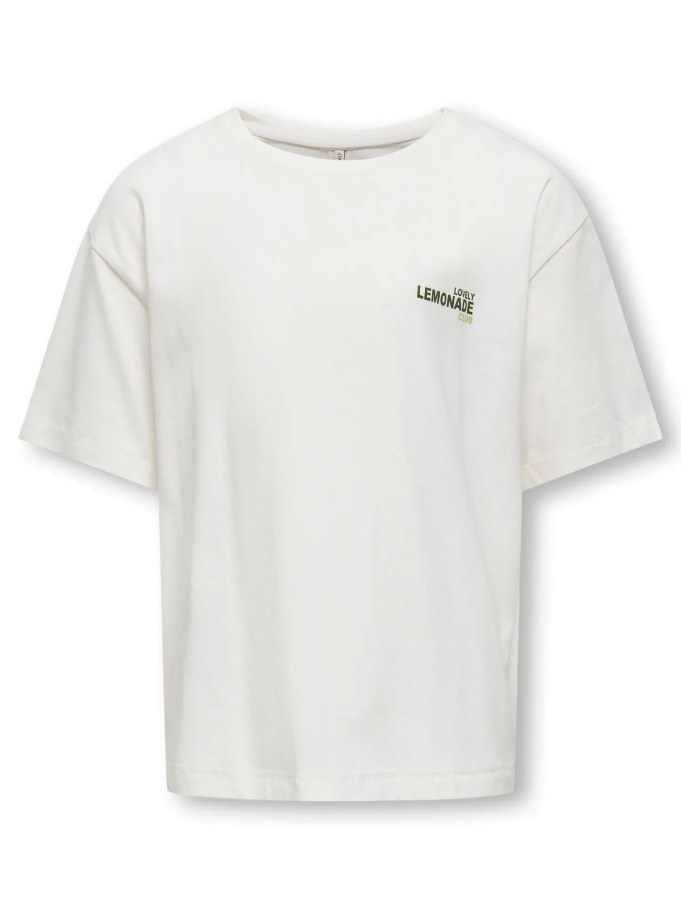 Dit leuke t-shirt voor meisjes van het merk Only is een echte musthave voor in je kledingkast. Het t-shirt heeft korte mouwen en een ronde hals en op de achterkant staat een leuke backprint van citroenen. Aan de voorkant staat op de borst een kleine tekst. Je kunt dit item leuk combineren op bijvoorbeeld een korte broek of een leuke pantalon.