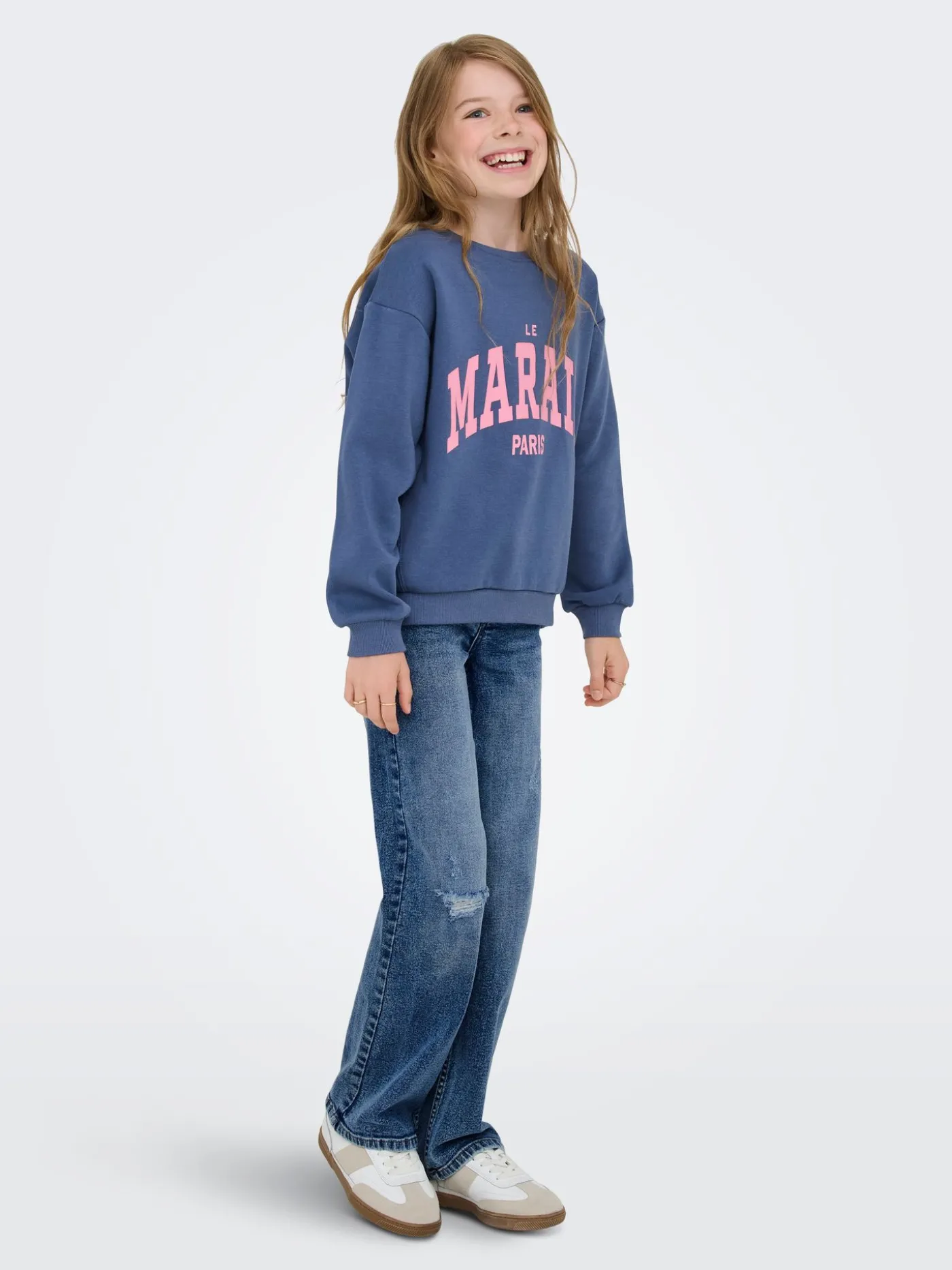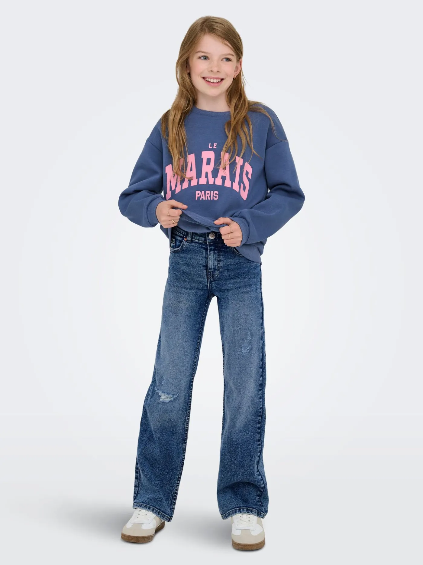 Deze donkerblauwe jeans voor meisjes van Kids Only heeft een trendy wide leg pasvorm met een stoere uitstraling. De zachte denim met stretch biedt comfort en bewegingsvrijheid, ideaal voor elke dag.