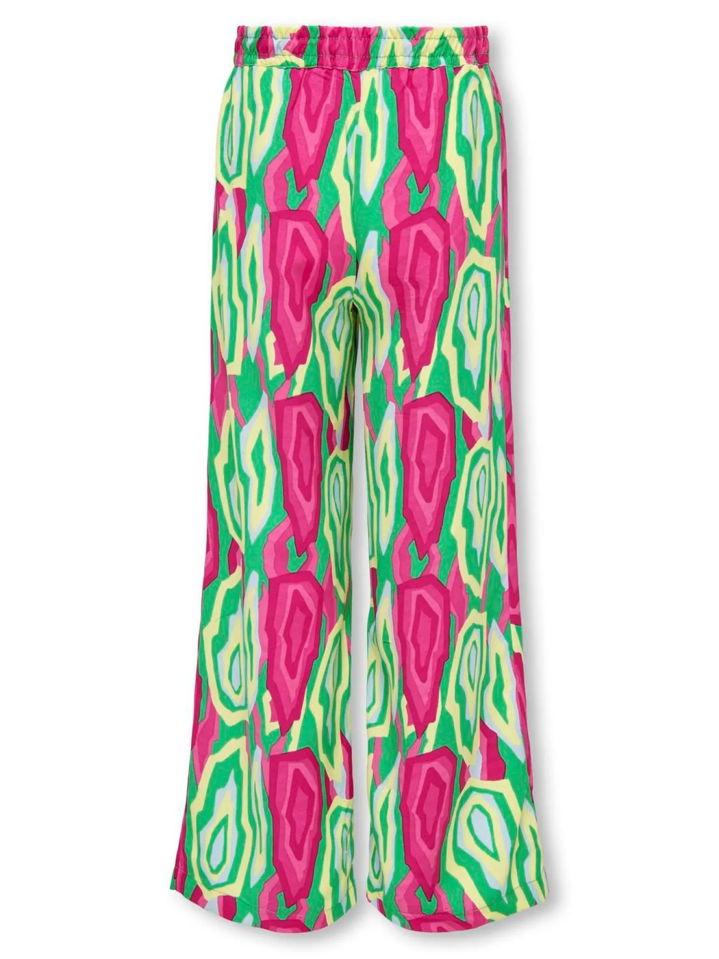 Wide fit broek voor meisjes van Only Kids. De broek heeft een elastische tailleband en een kleurrijke all over print. Een toffe eye catcher voor de zomerdagen!