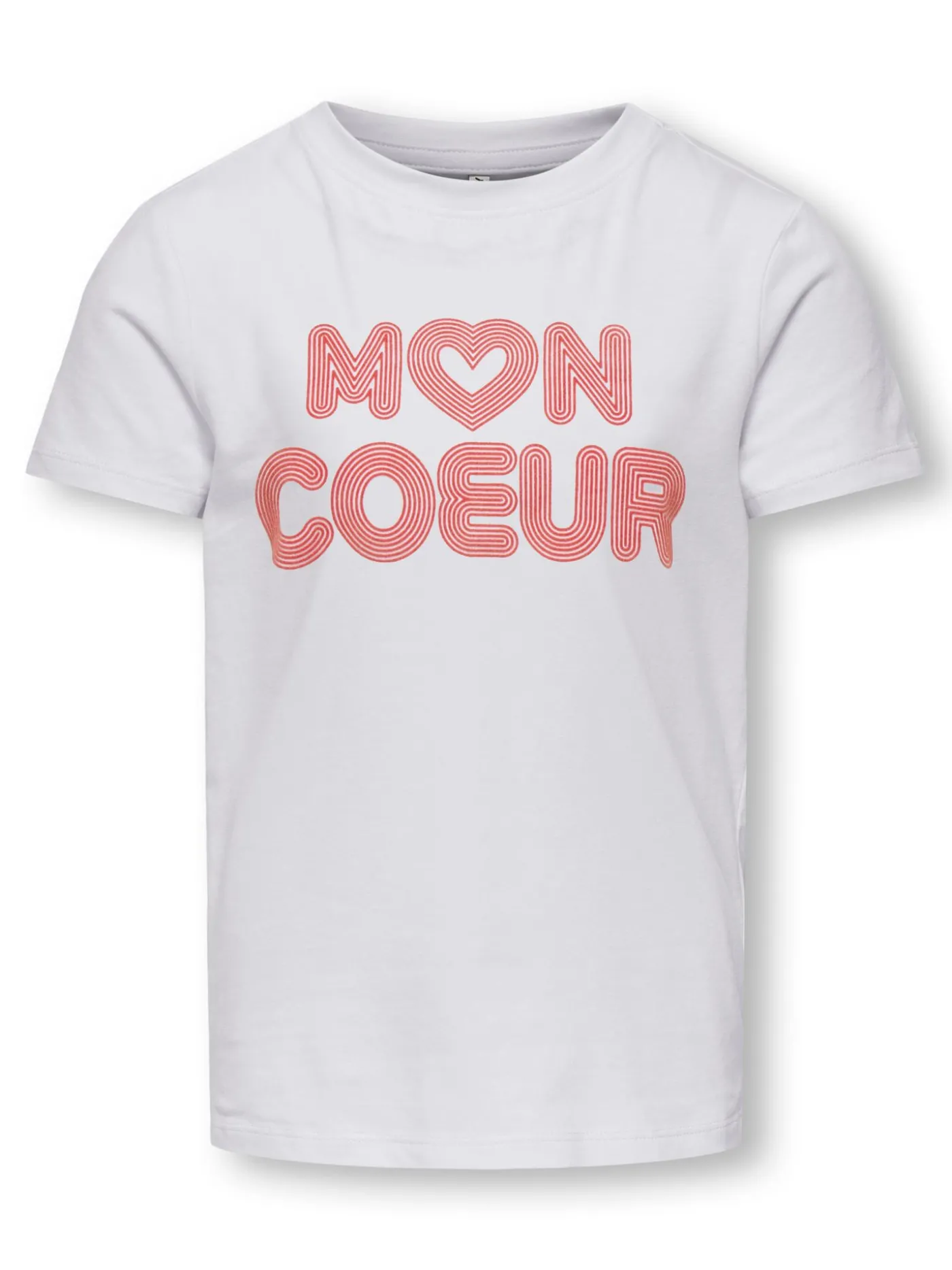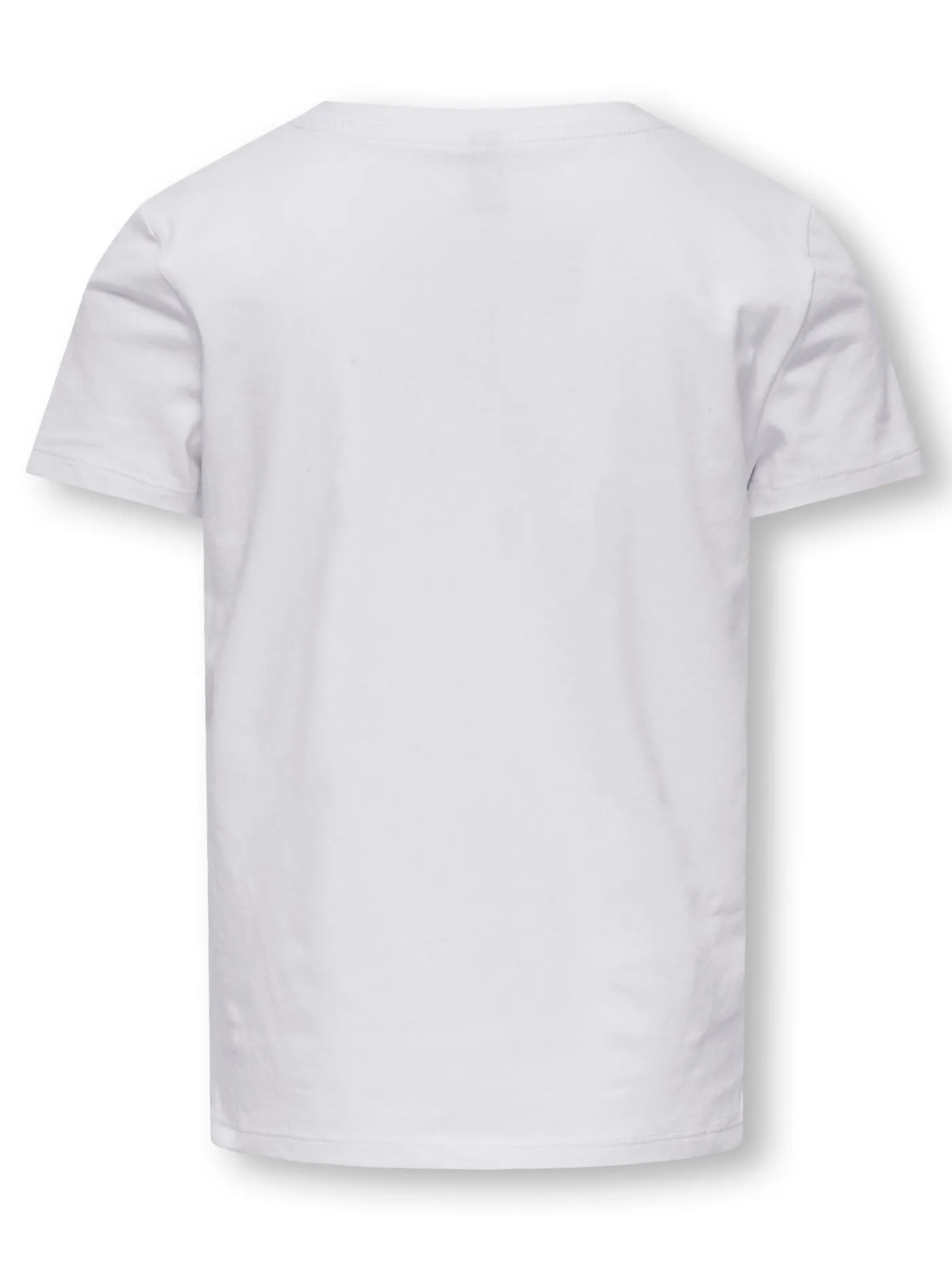 Dit is een T-shirt van het merk Only. Er staat een leuke tekst op de achterkant en een logo aan de voorkant. Het heeft een ronde kraag en korte mouwen. het staat leuk met jeans.