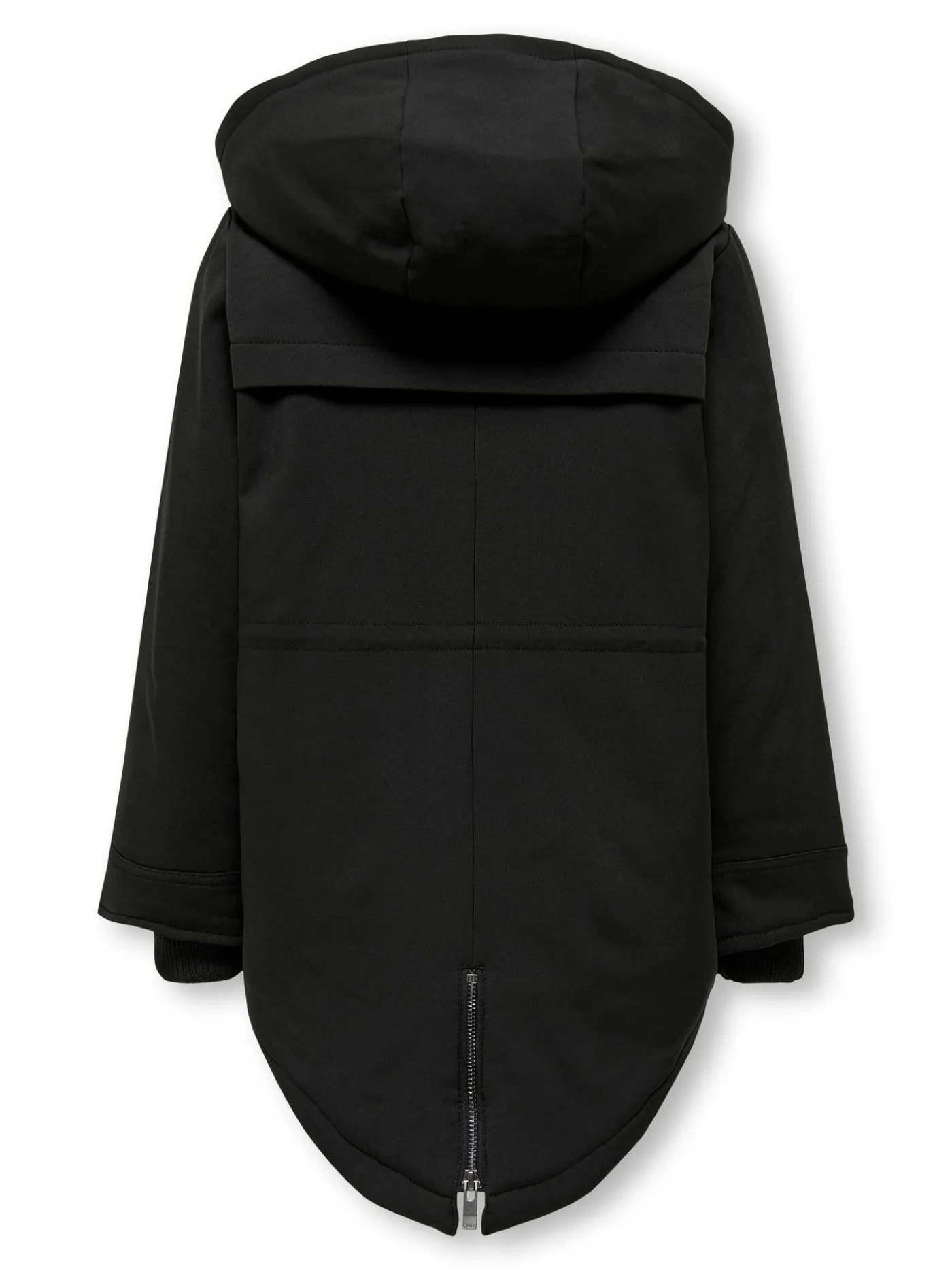 Zwarte lange jas van het merk only. Deze meisjes jas is een langer model en is voorzien van zakken, een capuchon en een ritssluiting. De jas is gemaakt van een dikke stof dus ideaal voor in de winter!